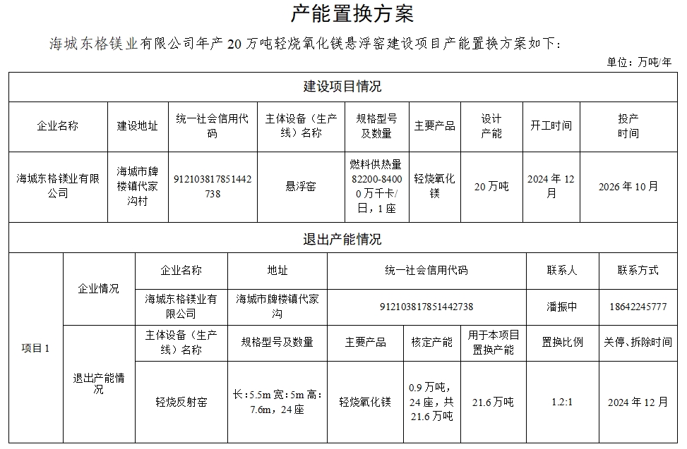 附件6.海城東格鎂業(yè)有限公司產(chǎn)能置換方案