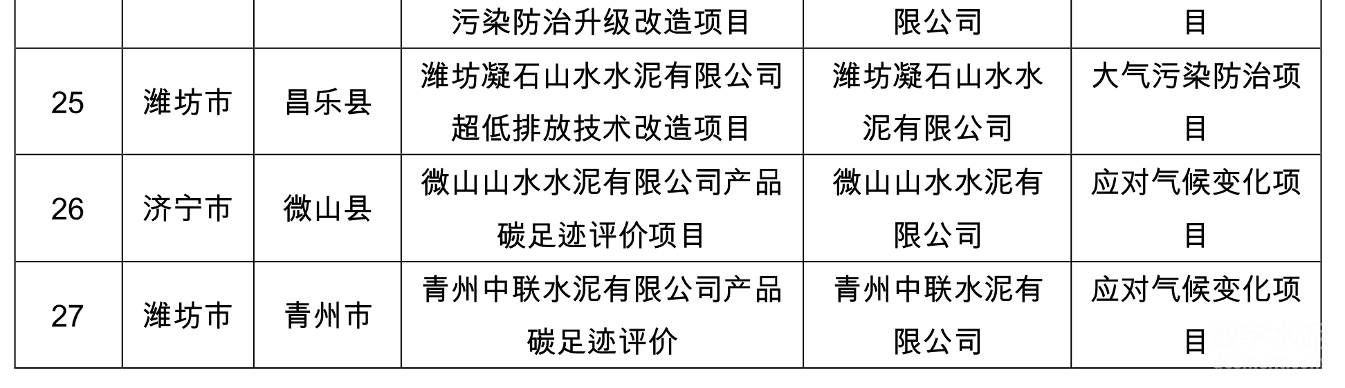 根據(jù)公示,中聯(lián)、山水等多家水泥企業(yè)技改項目擬入選《2024年度山東省環(huán)保金融項目庫入庫項目清單》。