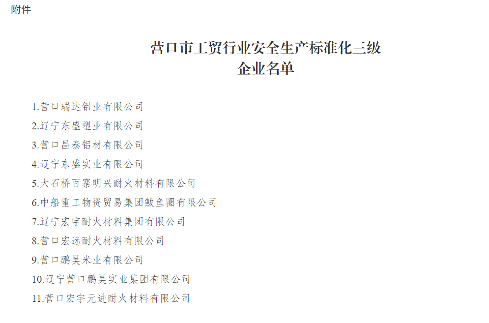 附件:營口市工貿(mào)行業(yè)安全生產(chǎn)標準化三級企業(yè)名單