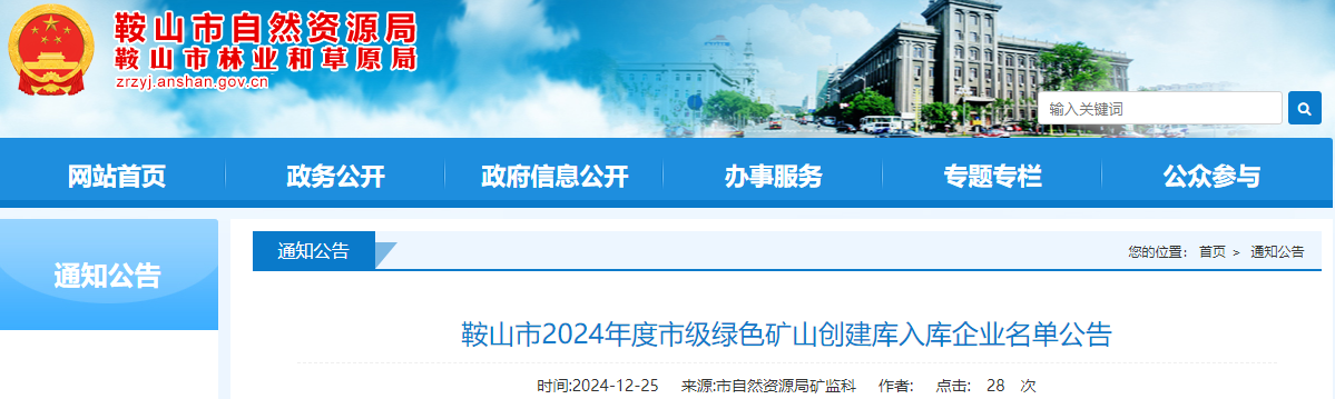 附件:鞍山市2024年度市級綠色礦山創(chuàng)建庫入庫企業(yè)名單