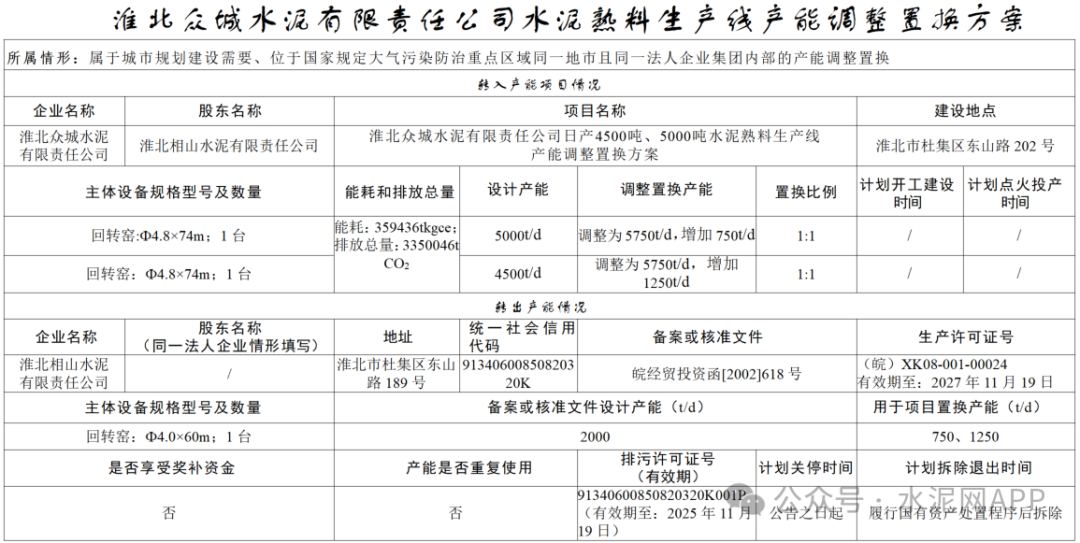 12月31日,安徽省工信廳發(fā)布“關(guān)于淮北眾城水泥有限責(zé)任公司水泥熟料生產(chǎn)線產(chǎn)能調(diào)整置換方案的公示”。