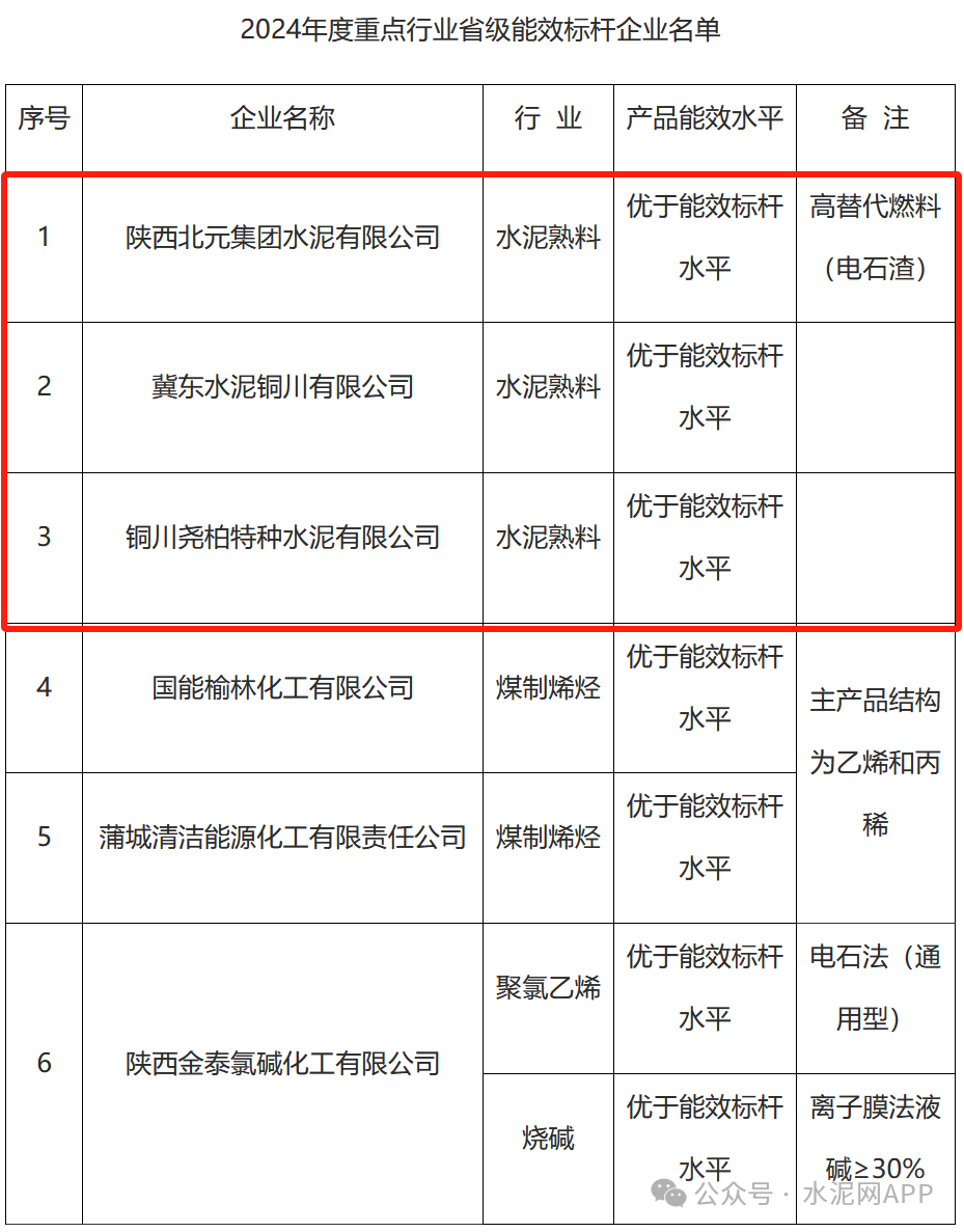 其中,陜西北元集團水泥有限公司、冀東水泥銅川有限公司、銅川堯柏特種水泥有限公司產(chǎn)品能效均優(yōu)于標桿水平。