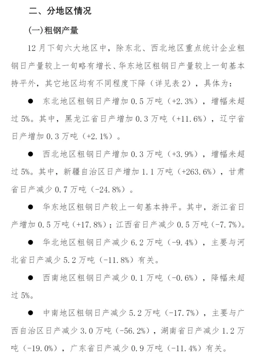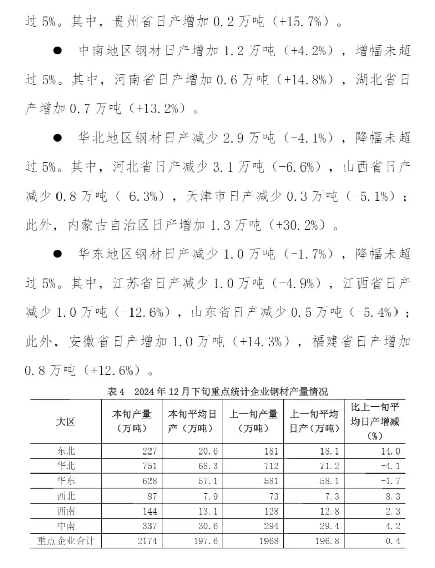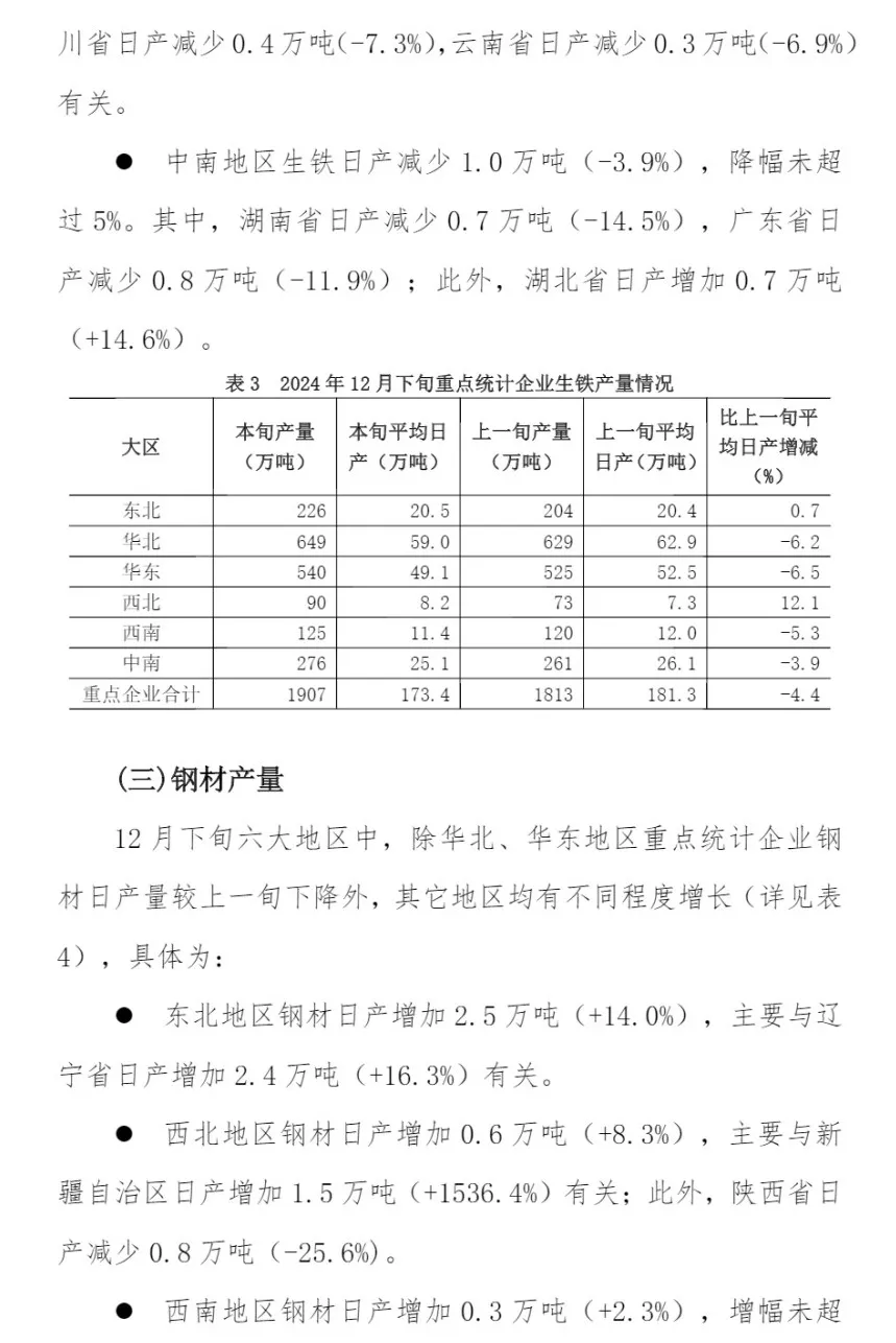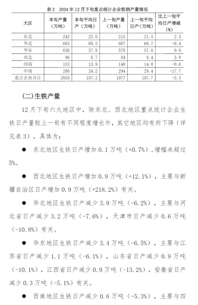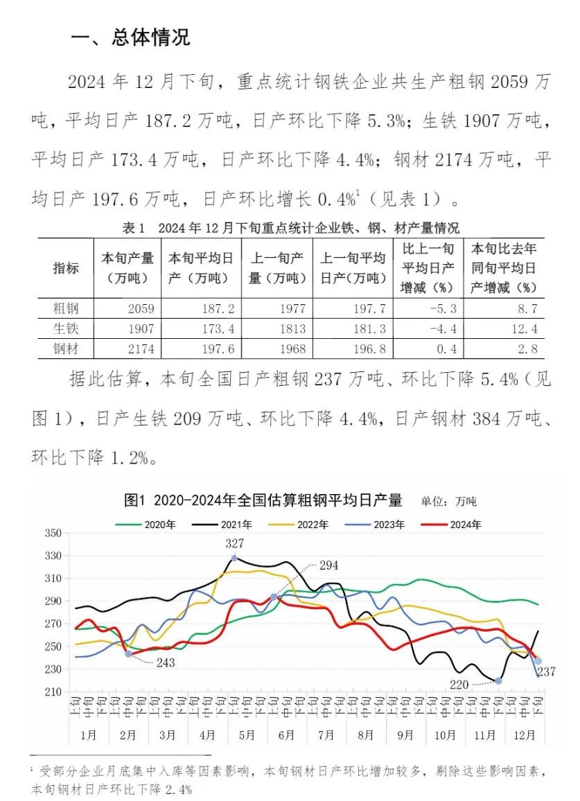 2024年12月下旬重點(diǎn)企業(yè)鋼鐵產(chǎn)量旬報(bào)