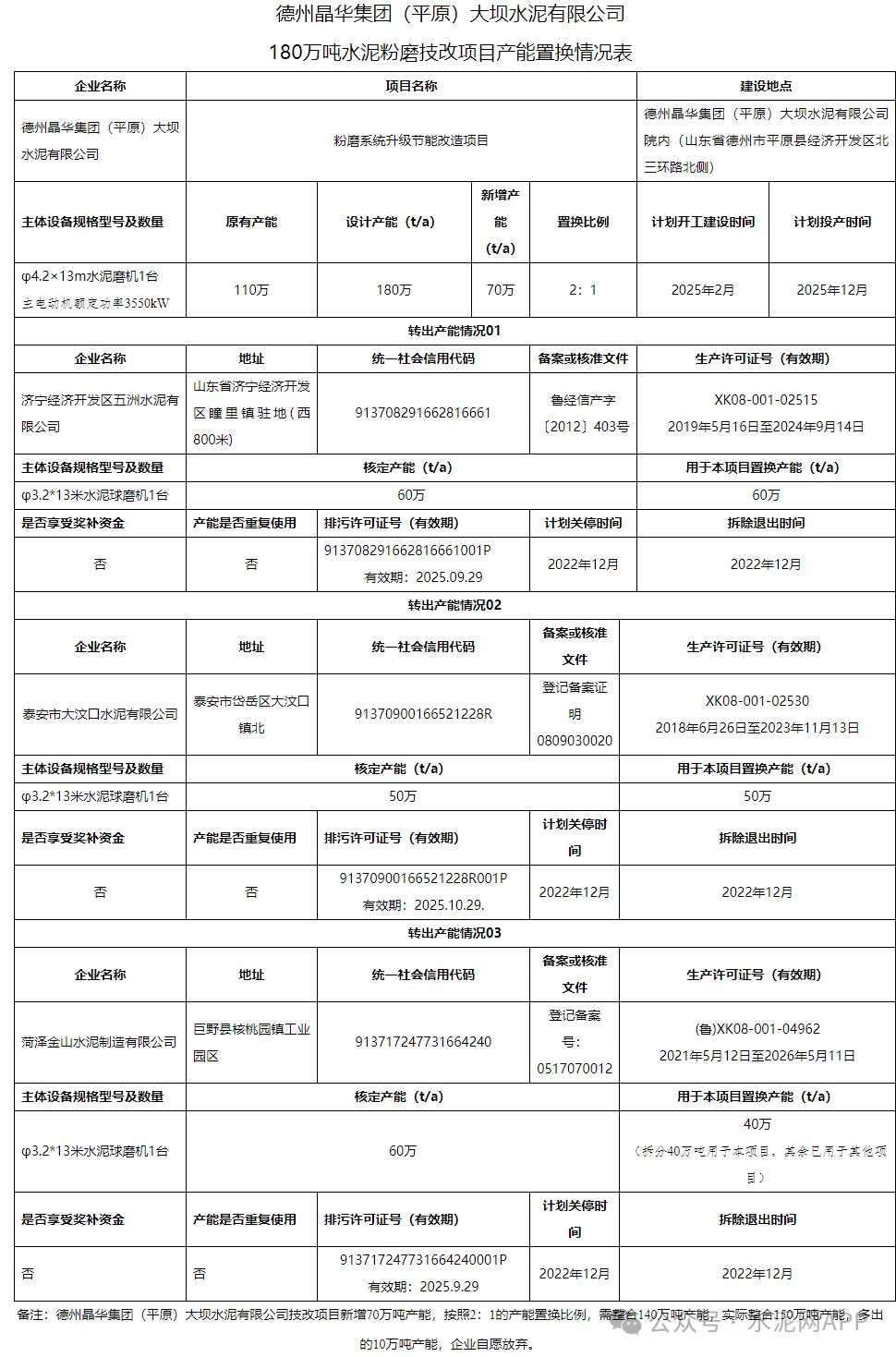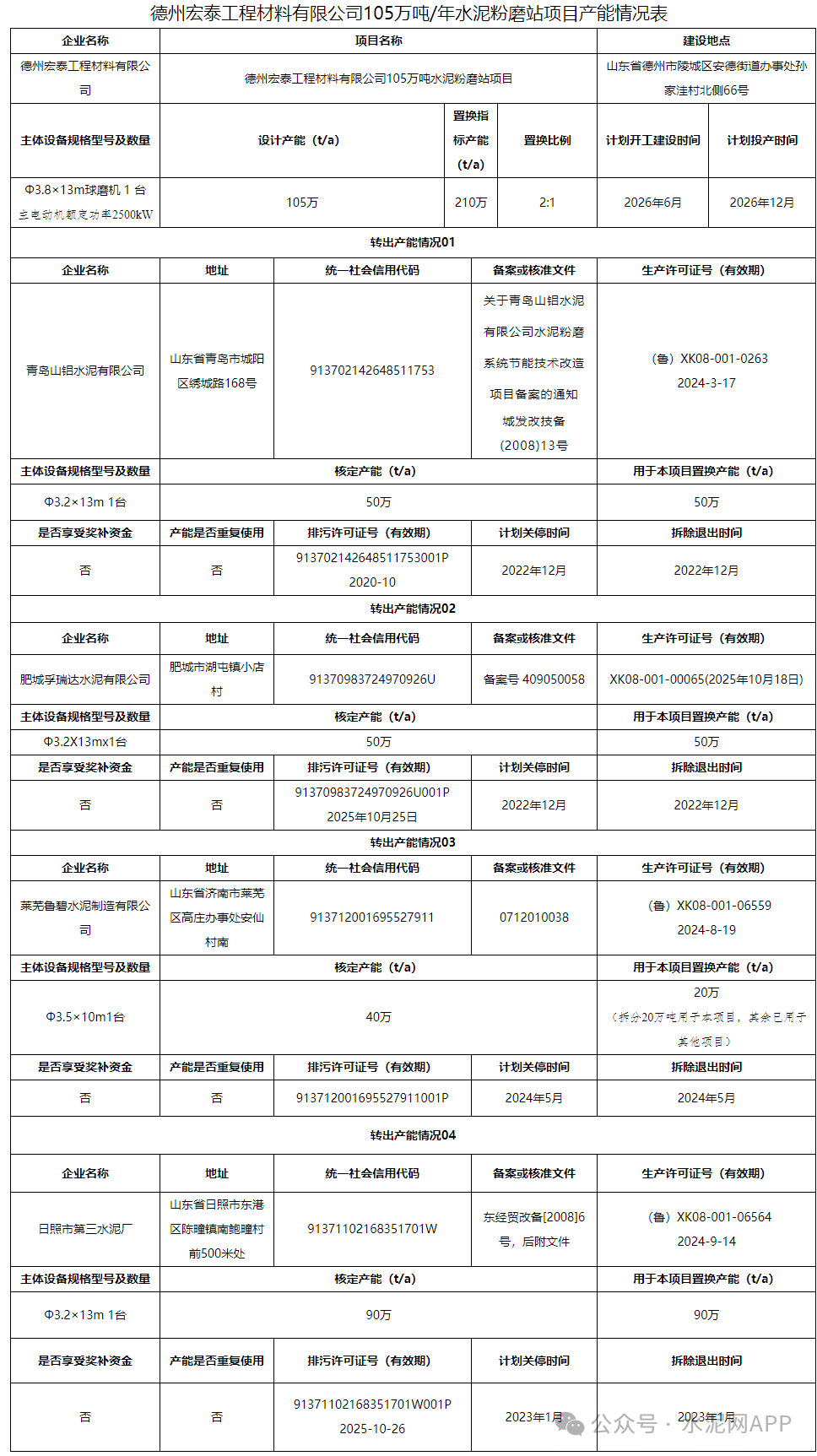 莒縣中聯(lián)水泥有限公司擬新建φ3.8×14.5m水泥磨機(jī)一臺,年產(chǎn)能130萬噸;德州宏泰工程材料有限公司擬新建φ3.8×13m水泥磨機(jī)一臺,年產(chǎn)能105萬噸;德州晶華集團(tuán)(平原)大壩水泥有限公司擬對現(xiàn)有φ4.2×13m水泥粉磨生產(chǎn)線進(jìn)行技術(shù)改造;東平中聯(lián)水泥有限公司擬對現(xiàn)有φ3.8×13m水泥磨機(jī)補(bǔ)齊產(chǎn)能。