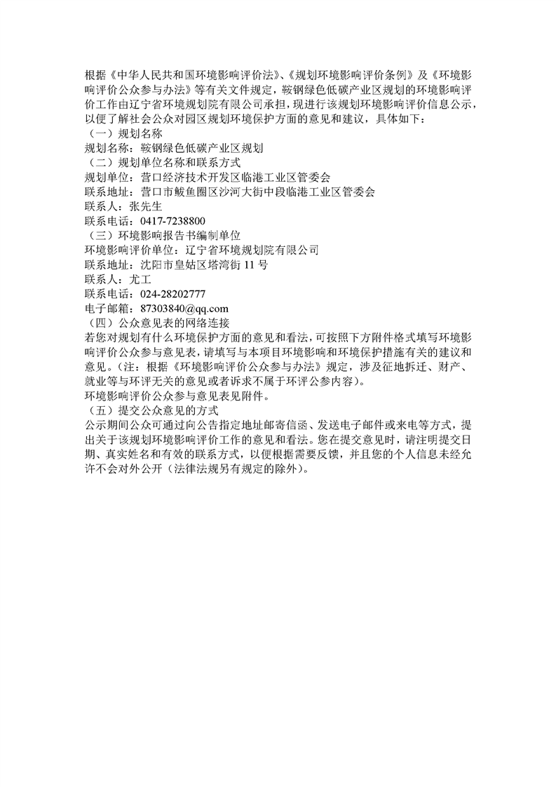 鞍鋼綠色低碳產(chǎn)業(yè)區(qū)規(guī)劃環(huán)境影響評價公示