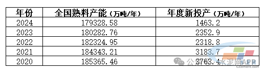 榜單顯示,2024年全國新投產(chǎn)熟料生產(chǎn)線11條,合計產(chǎn)能1463.2萬噸,和2023年新投產(chǎn)的2352.9萬噸相比,減少889.7萬噸。