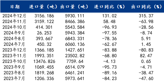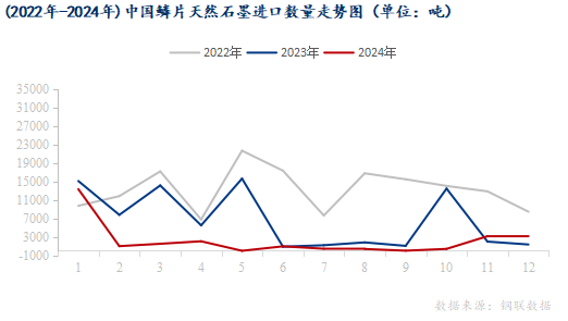 四、鱗片石墨市場(chǎng)分析2024年12月鱗片石墨進(jìn)口出口水平年同比均有明顯上漲,但月環(huán)比均有小幅下調(diào)。結(jié)合國內(nèi)市場(chǎng)因素來看,冬季黑龍江石墨生產(chǎn)企業(yè)多處停產(chǎn)狀態(tài),產(chǎn)量環(huán)比下降明顯。而國內(nèi)需求端表現(xiàn)不佳,市場(chǎng)買氣不足,訂單下達(dá)不及預(yù)期,整體市場(chǎng)供需雙弱,價(jià)格維持低位運(yùn)行。從國外市場(chǎng)因素來看,外貿(mào)訂單已至年內(nèi)尾期,需求淡季,進(jìn)出口訂單下達(dá)數(shù)量有限。