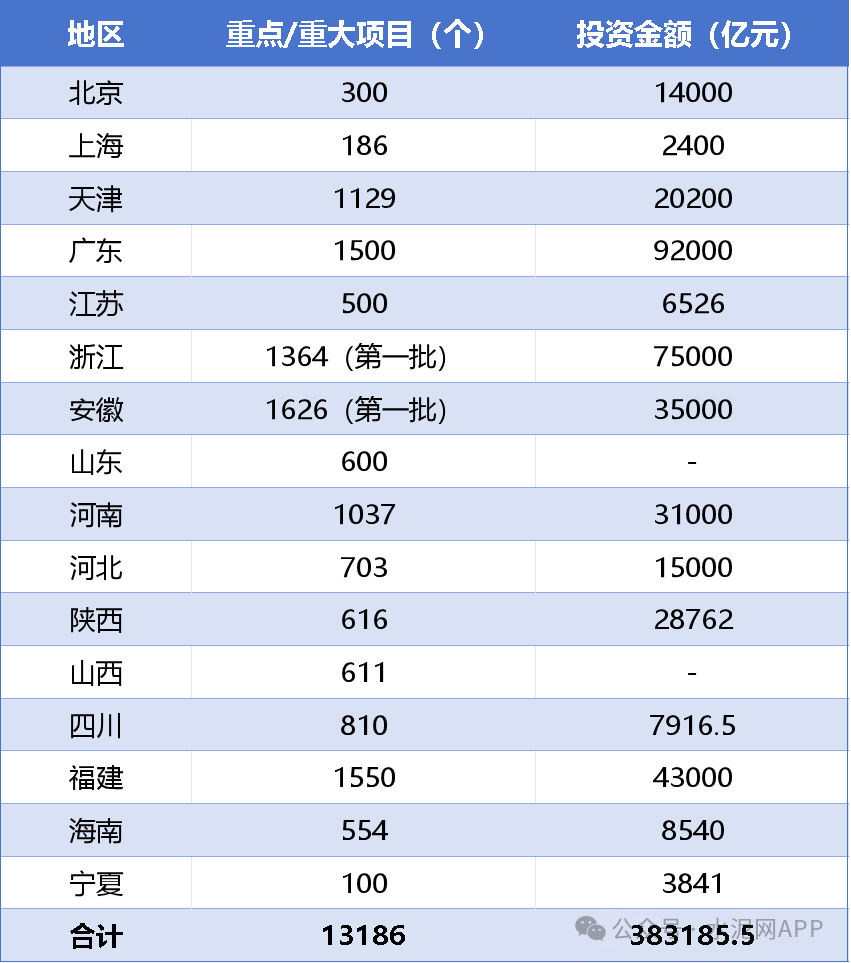 據(jù)不完全統(tǒng)計,截至目前,全國已有16個省市自治區(qū)發(fā)布2025年重點工程項目相關(guān)投資計劃,總項目數(shù)超1.3萬個,總投資額合計超38萬億元。