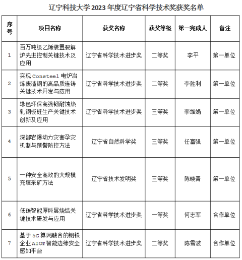 近日,省政府公布《遼寧省人民政府關于2023年度遼寧省科學技術獎勵的決定》,遼寧科技大學作為第一單位共有5項成果獲獎,其中科學技術進步獎二等獎2項、科學技術進步獎三等獎1項、自然科學獎三等獎1項、技術發(fā)明獎三等獎1項,作為合作單位獲科學技術進步獎一等獎、二等獎各1項,獲獎數(shù)量位居省屬高校前列。