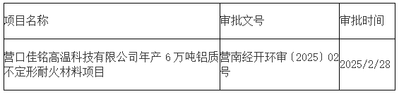 關(guān)于營口佳銘高溫科技有限公司年產(chǎn)6萬噸鋁質(zhì)不定形耐火材料項(xiàng)目環(huán)境影響報(bào)告表的批復(fù)