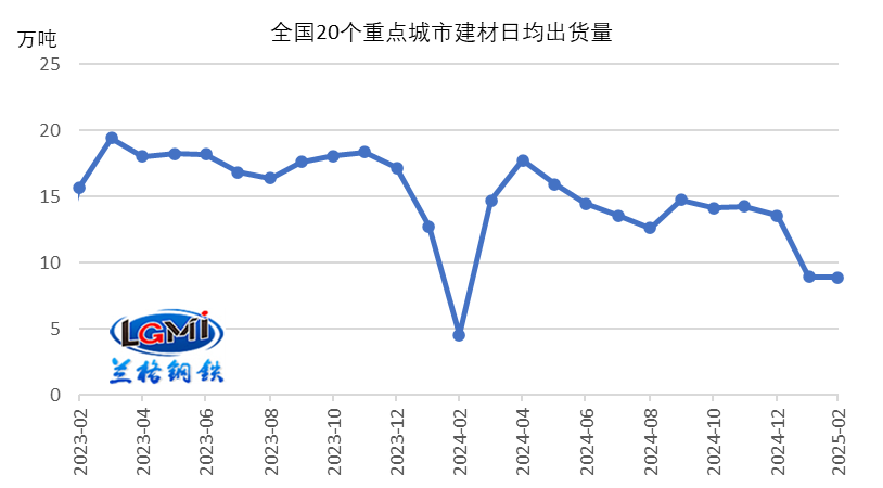 2025年2月份,建材成交略有下滑,但同比明顯增長。蘭格鋼鐵網(wǎng)統(tǒng)計的2月份20個重點城市建筑鋼材日均成交量為8.88萬噸(詳見圖2),較上月減少0.05萬噸,同比增長95.6%。2025年以來,專項債發(fā)行明顯加快,據(jù)專項債券網(wǎng)數(shù)據(jù)顯示,2025年1月,地方政府新增專項債券發(fā)行額為2048.0億元,較上年同期增加1480.2億元;截至2月26日,2月份新增專項債發(fā)行額2992.7億元,較上年全月減少473.2億元;1-2月份,累計發(fā)行新增專項債5040.7億元,較上年同期增加1007億元。春節(jié)過后,各地重大項目陸續(xù)集中開竣工。隨著氣候條件的逐步改善和資金到位,各地重點項目將深入推進(jìn),將帶動3月份建筑鋼材需求逐步回暖。