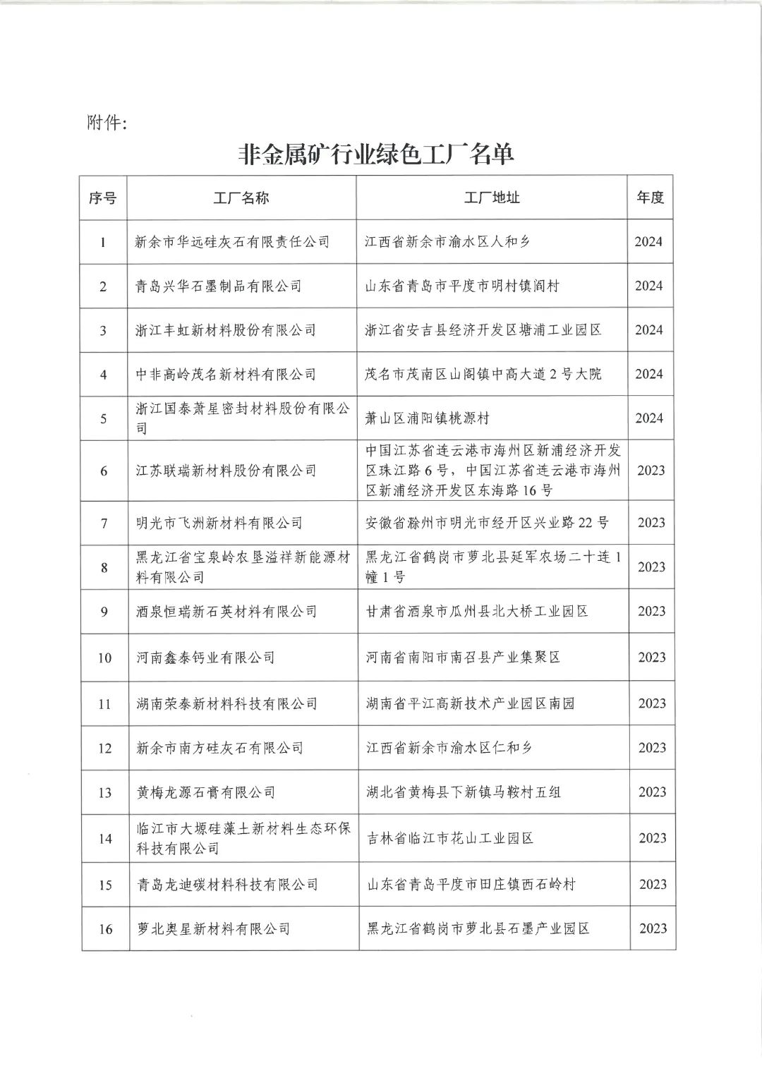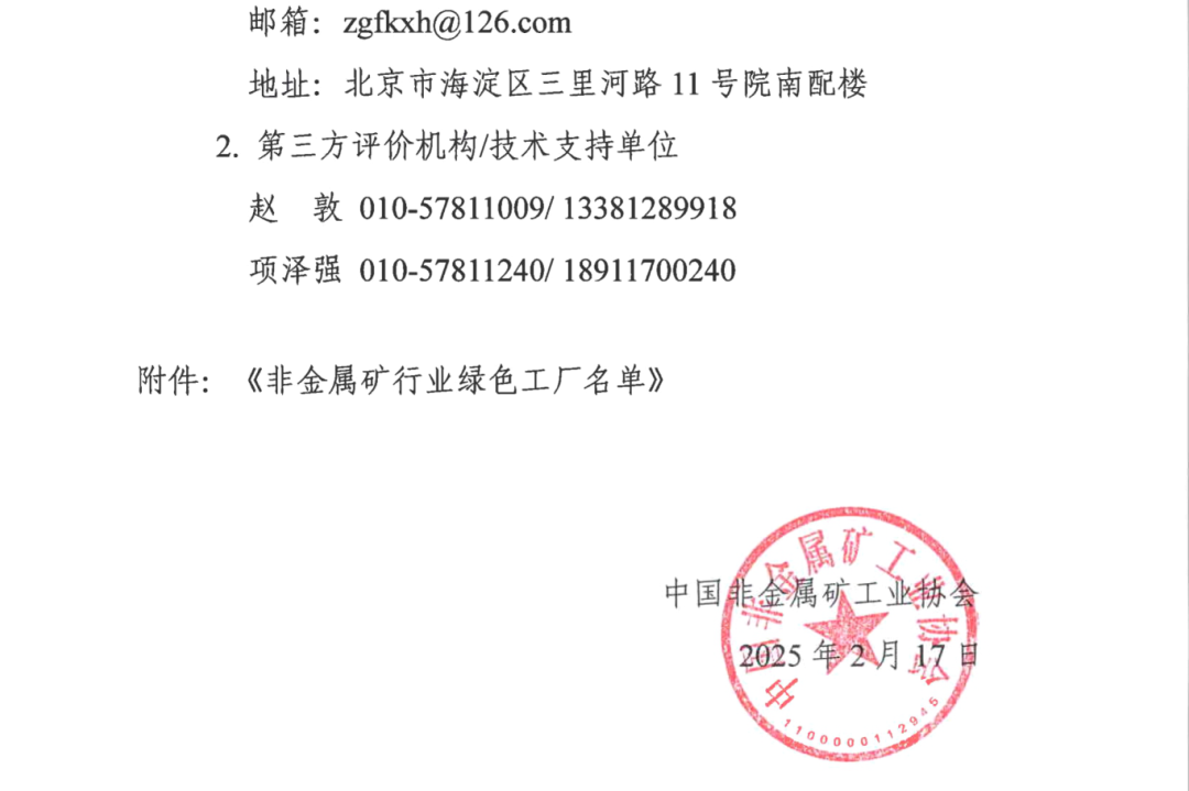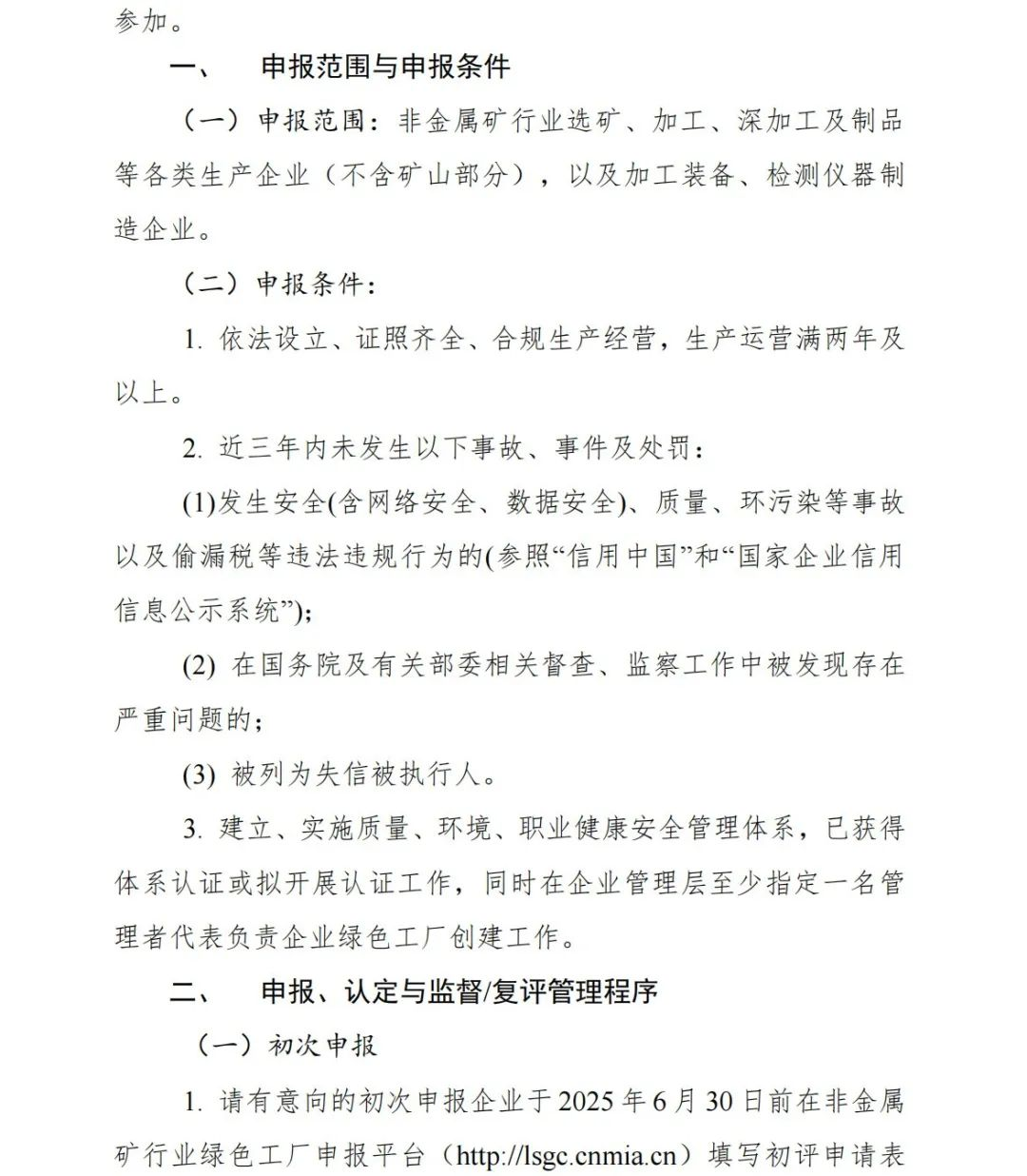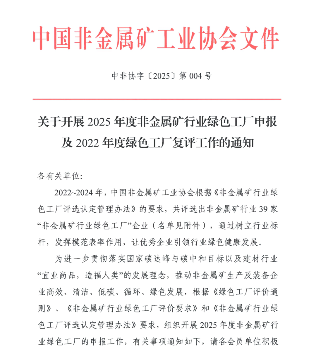 關(guān)于開(kāi)展2025年度非金屬礦行業(yè)綠色工廠申報(bào)及2022年度綠色工廠復(fù)評(píng)工作的通知?