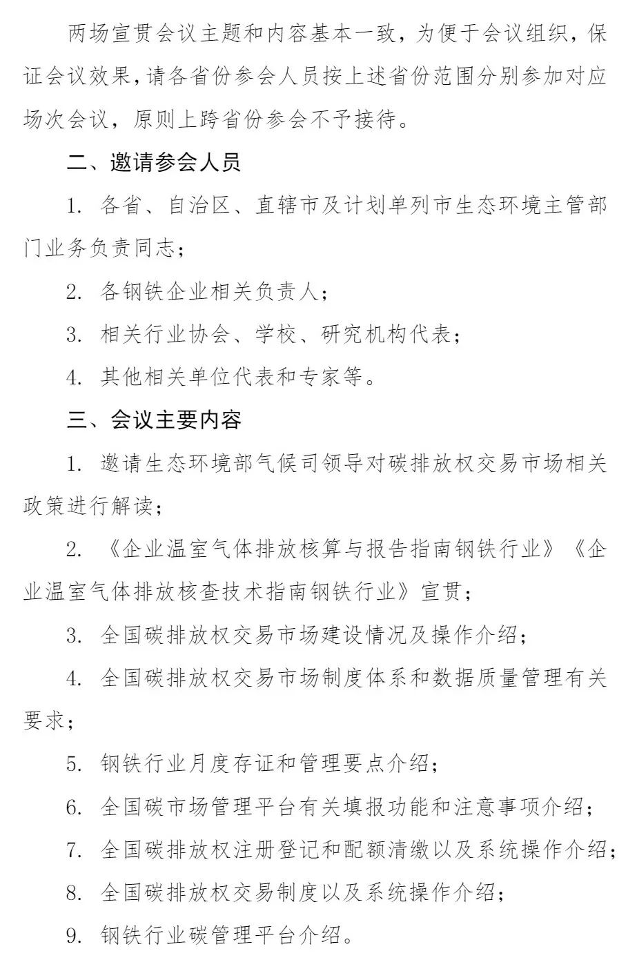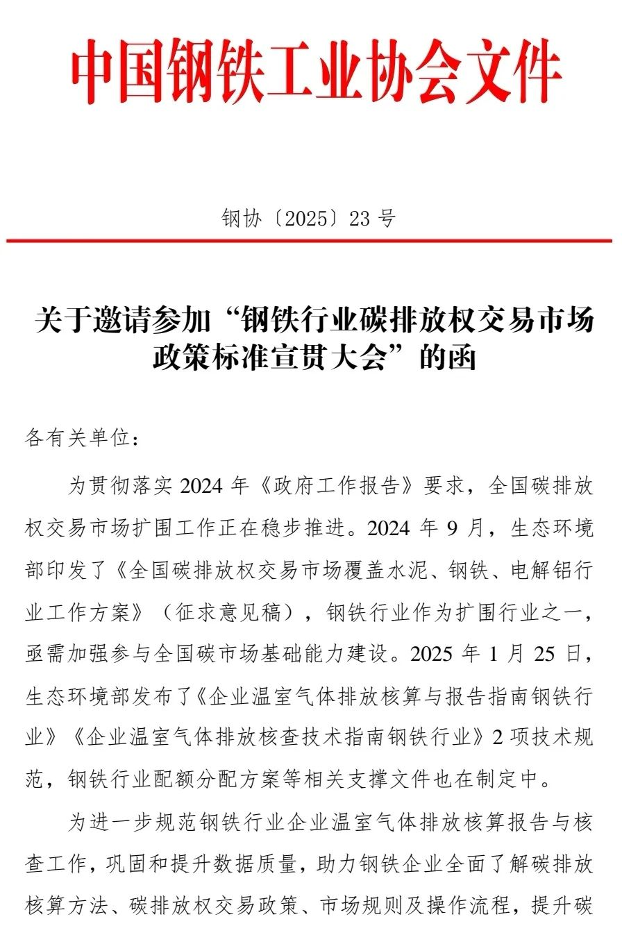 關于召開“鋼鐵行業(yè)碳排放權交易市場政策標準宣貫大會”的通知?