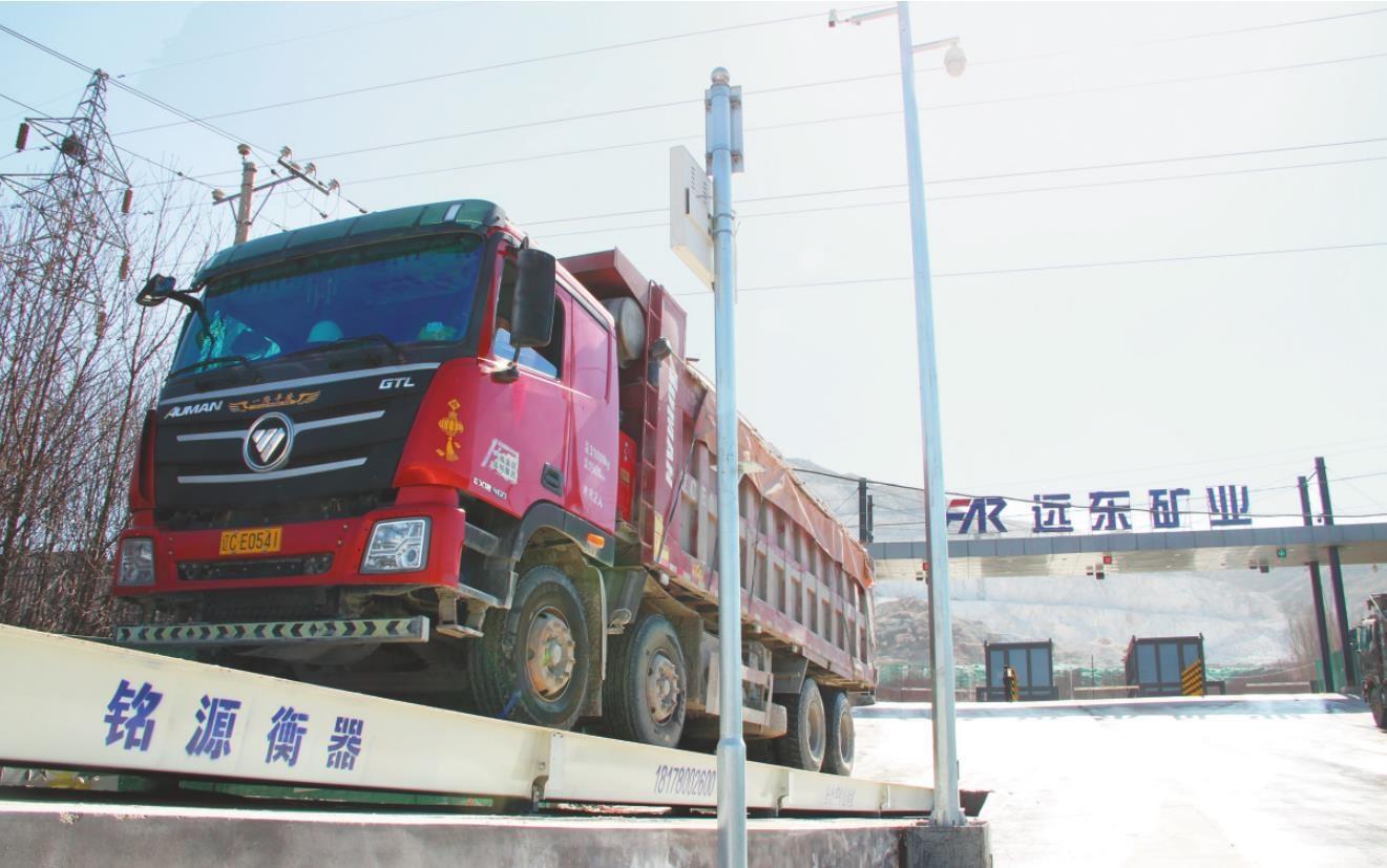 滿載鎂礦石的大貨車正在通過海城市牌樓鎮(zhèn)的遠東計量站,計量站設備與智慧菱鎂大數(shù)據(jù)平臺聯(lián)網(wǎng),實現(xiàn)智能計量礦石運出量。