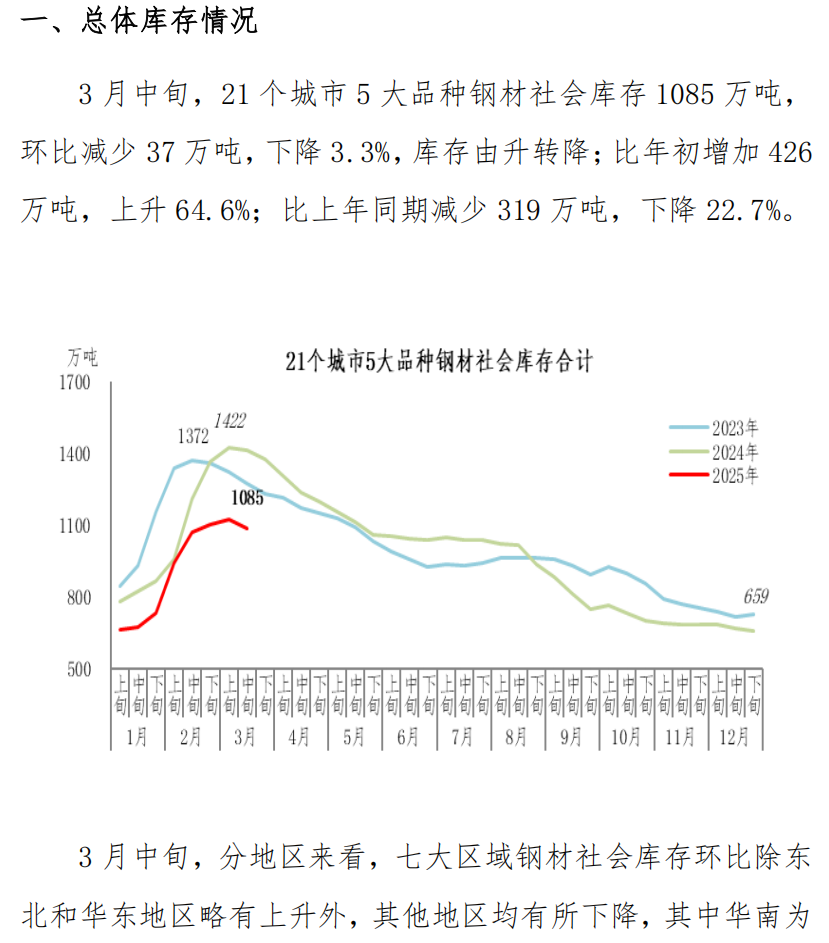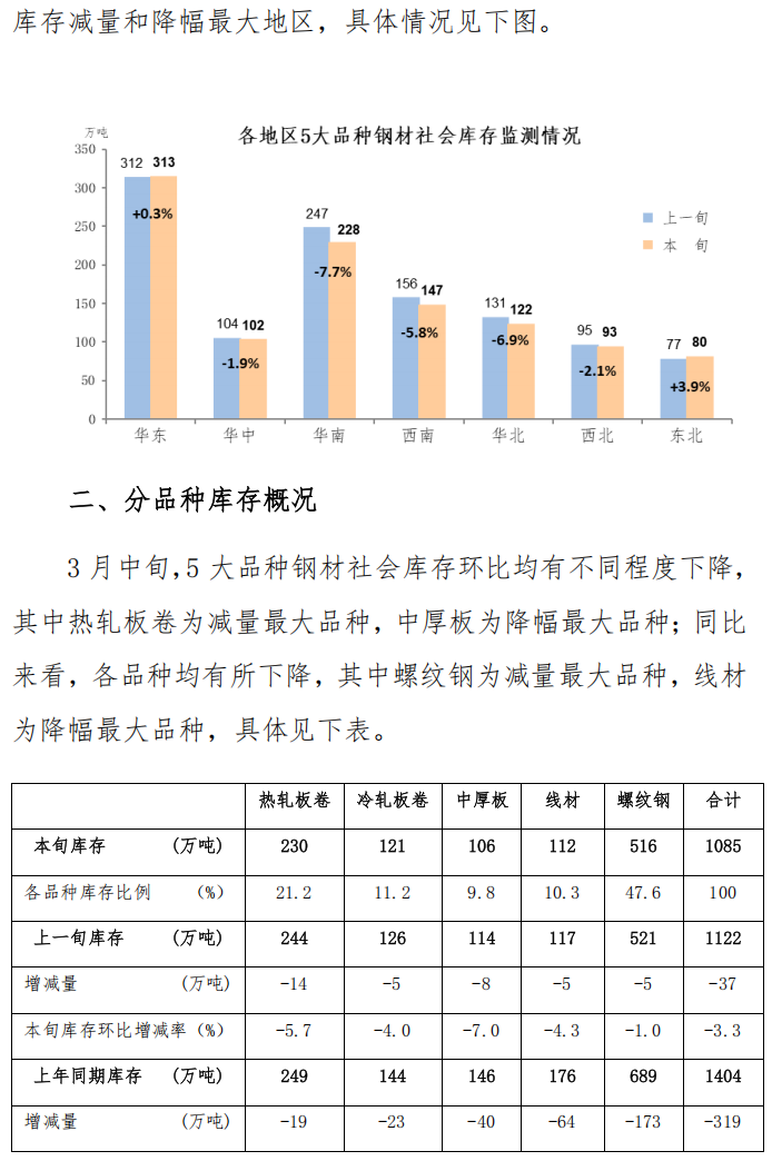 3月中旬鋼材社會庫存監(jiān)測旬報