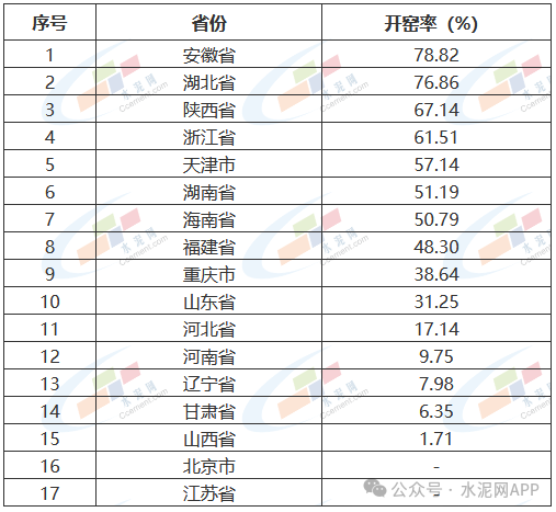 2025年3月10日-2025年3月16日全國(guó)各省開(kāi)窯率排行