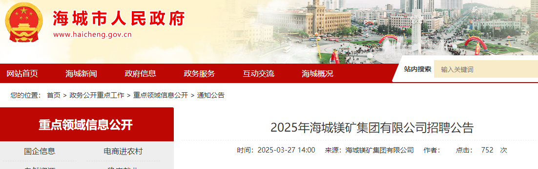 為切實(shí)做好海城鎂礦集團(tuán)有限公司人才培養(yǎng)及可持續(xù)發(fā)展的人才戰(zhàn)略,進(jìn)一步優(yōu)化人才結(jié)構(gòu),為企業(yè)未來發(fā)展做好人才儲備,2025年海鎂集團(tuán)擬計(jì)劃招聘64人。具體招聘崗位及要求如下: