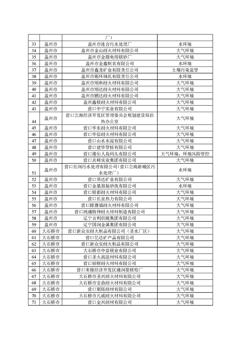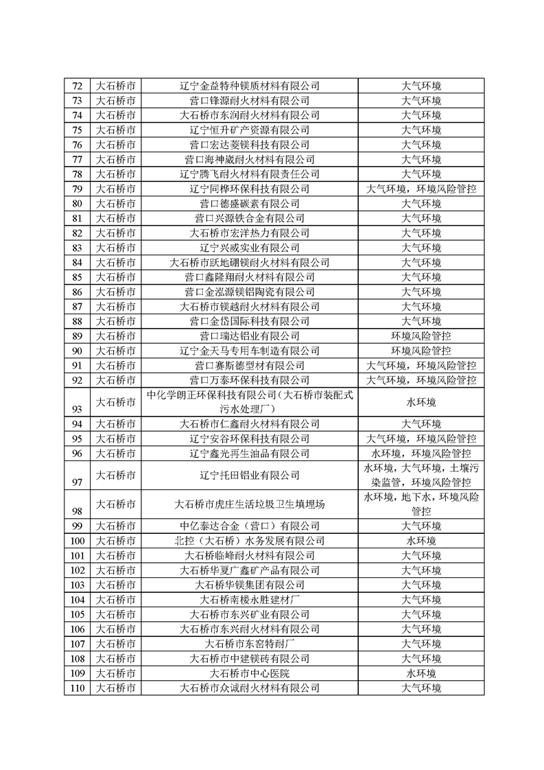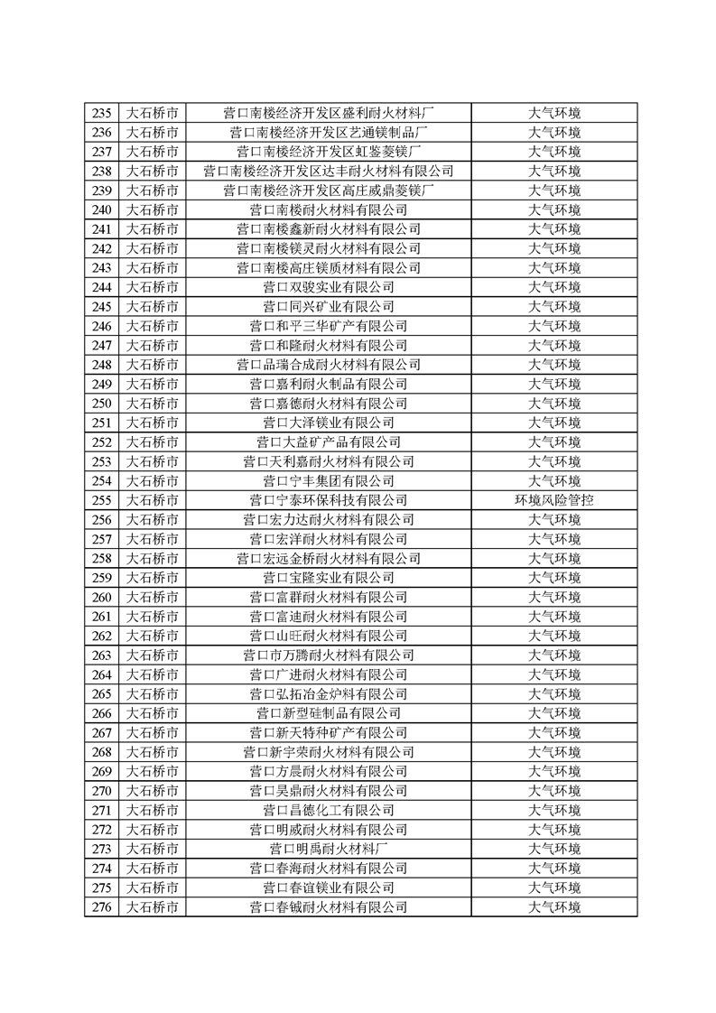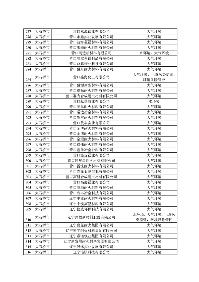 2025年1月起,營口市生態(tài)環(huán)境局依據(jù)《環(huán)境監(jiān)管重點單位名錄管理辦法》(部令27號)有關(guān)規(guī)定和時間節(jié)點要求,開展了本年度環(huán)境監(jiān)管重點單位名錄的更新工作,經(jīng)縣區(qū)申報、市局初審、省廳、生態(tài)環(huán)境部反饋調(diào)整共四輪修改,并征求各科室意見,最終形成《營口市2025年環(huán)境監(jiān)管重點單位名錄》(以下簡稱“名錄”),并在官網(wǎng)予以發(fā)布?!睹洝饭灿?22家企業(yè),其中大石橋市企業(yè)267家,大部分均為耐火企業(yè),這些企業(yè)將全部納入營口市“雙隨機”檢查對象名錄庫,抽查頻次和比例按照省市“雙隨機、一公開”監(jiān)管工作要求執(zhí)行。