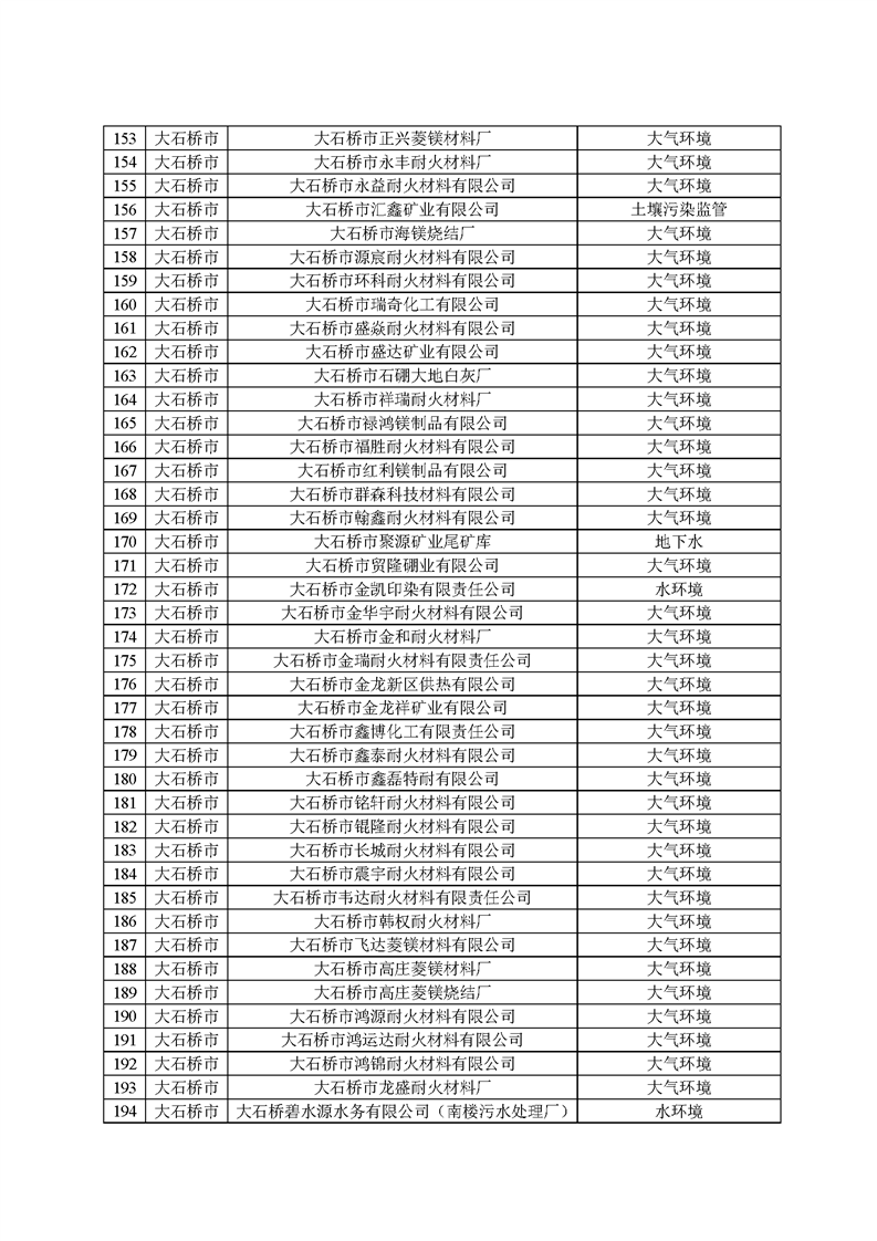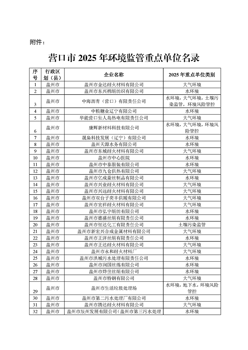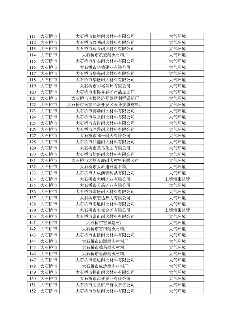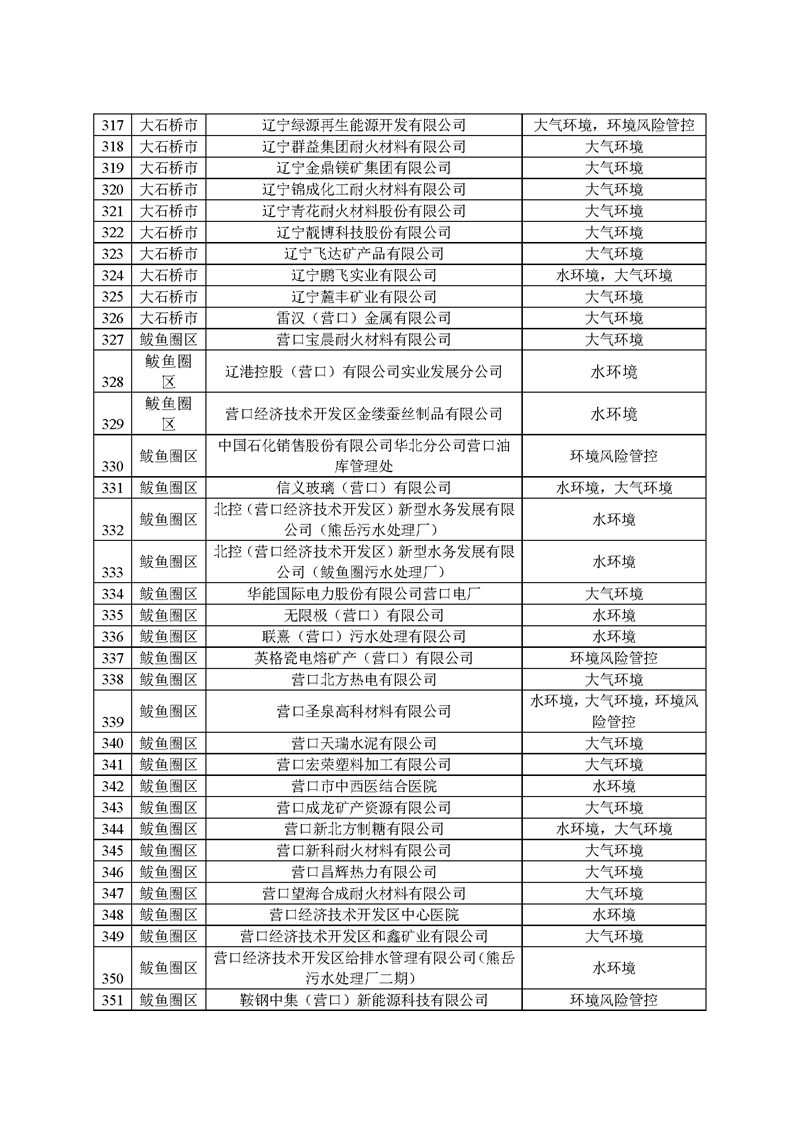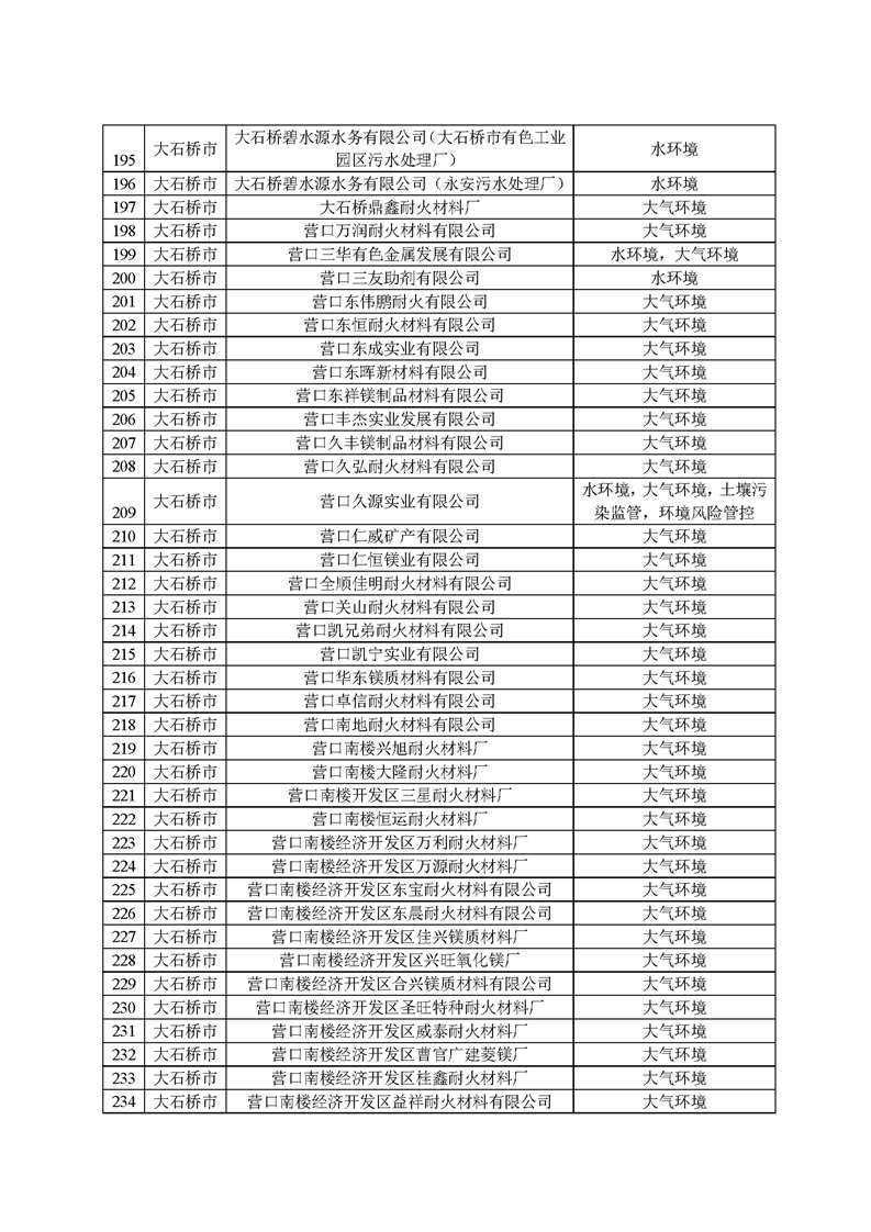 2025年1月起,營口市生態(tài)環(huán)境局依據(jù)《環(huán)境監(jiān)管重點單位名錄管理辦法》(部令27號)有關(guān)規(guī)定和時間節(jié)點要求,開展了本年度環(huán)境監(jiān)管重點單位名錄的更新工作,經(jīng)縣區(qū)申報、市局初審、省廳、生態(tài)環(huán)境部反饋調(diào)整共四輪修改,并征求各科室意見,最終形成《營口市2025年環(huán)境監(jiān)管重點單位名錄》(以下簡稱“名錄”),并在官網(wǎng)予以發(fā)布?!睹洝饭灿?22家企業(yè),其中大石橋市企業(yè)267家,大部分均為耐火企業(yè),這些企業(yè)將全部納入營口市“雙隨機”檢查對象名錄庫,抽查頻次和比例按照省市“雙隨機、一公開”監(jiān)管工作要求執(zhí)行。