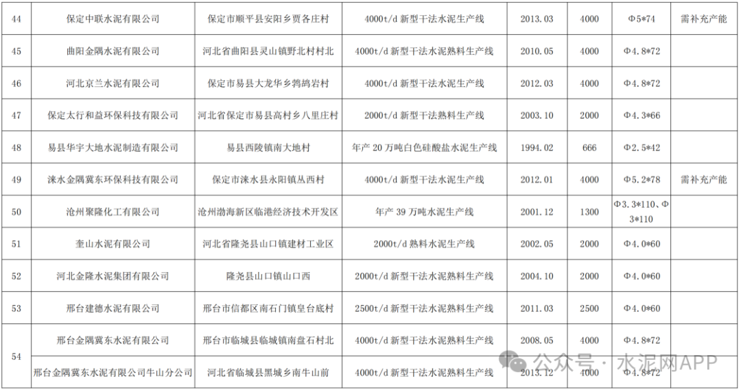 截至2024年12月31日,河北省共87條水泥熟料線。其中保定中聯(lián)水泥有限公司4000t/d水泥熟料線、淶水金隅冀東環(huán)??萍加邢薰?000t/d水泥熟料線需補(bǔ)充產(chǎn)能。