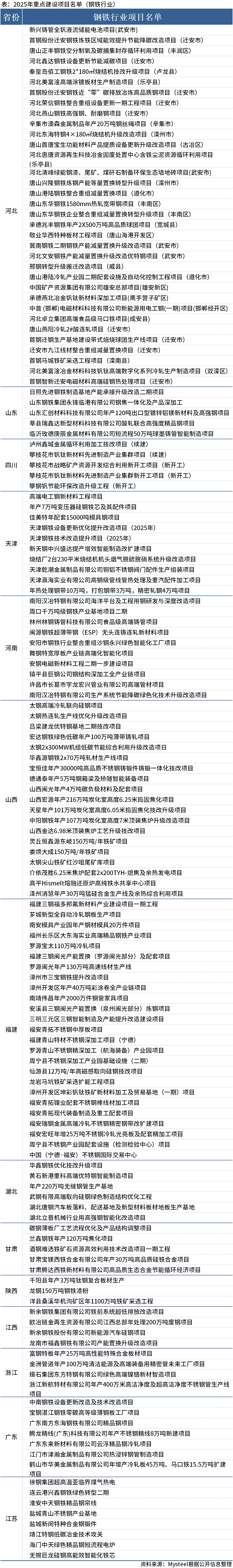 今年以來,河北、江蘇、 山東、天津、河南、山西、福建、湖北、甘肅、陜西、江西、浙江、廣東、四川公布2025年重點(diǎn)建設(shè)項(xiàng)目名單,其中,涉及鋼鐵行業(yè)相關(guān)項(xiàng)目145個(gè)。