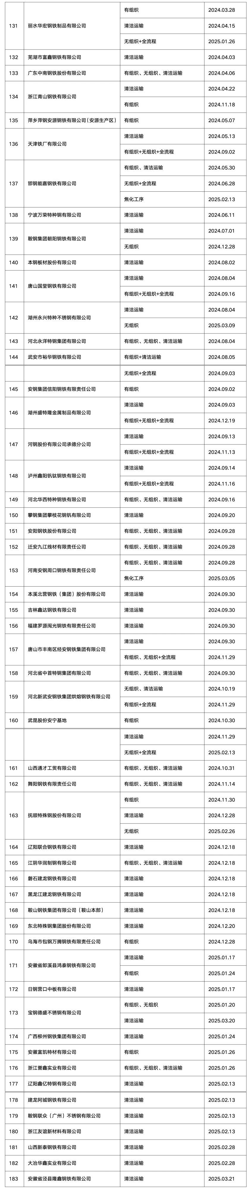 受生態(tài)環(huán)境部委托,自2020年8月起,中國鋼鐵工業(yè)協(xié)會(huì)開展了鋼鐵企業(yè)超低排放改造和評(píng)估監(jiān)測(cè)進(jìn)展情況公示工作。截至目前,已在鋼協(xié)網(wǎng)站進(jìn)行公示企業(yè)名單及各企業(yè)公示內(nèi)容整理如下: