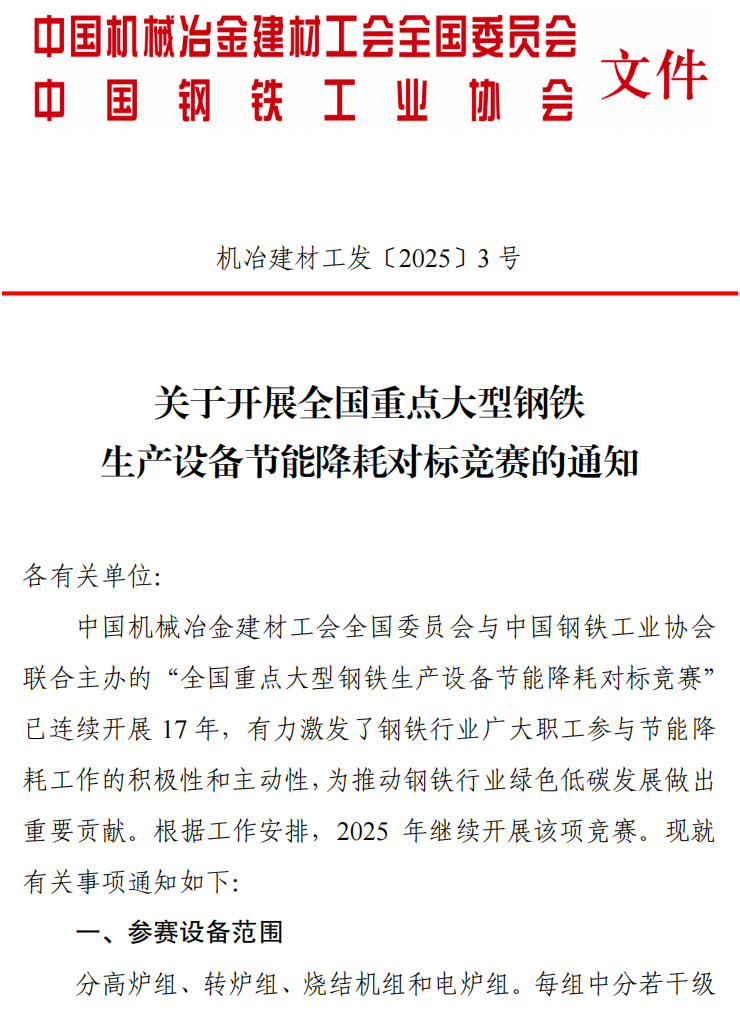 關(guān)于開展全國(guó)重點(diǎn)大型鋼鐵生產(chǎn)設(shè)備節(jié)能降耗對(duì)標(biāo)競(jìng)賽的通知
