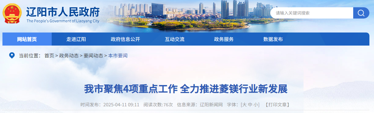 一季度,遼陽(yáng)市菱鎂行業(yè)高質(zhì)量發(fā)展工作穩(wěn)步推進(jìn)。在全面總結(jié)工作經(jīng)驗(yàn)、階段性成果的基礎(chǔ)上,遼陽(yáng)市聚焦4項(xiàng)重點(diǎn)工作,力求全方位推動(dòng)菱鎂行業(yè)實(shí)現(xiàn)新的突破與提升。