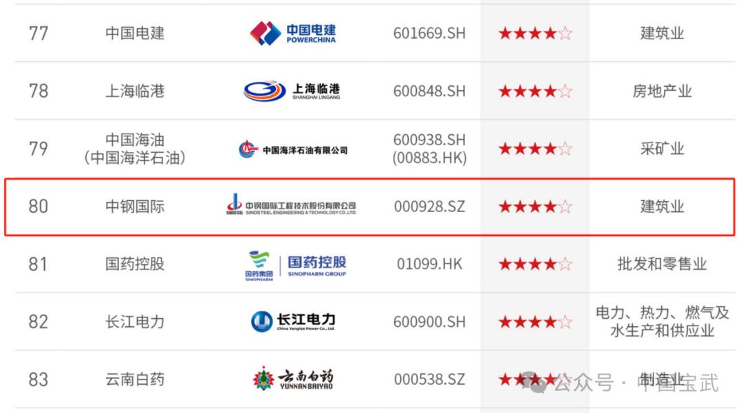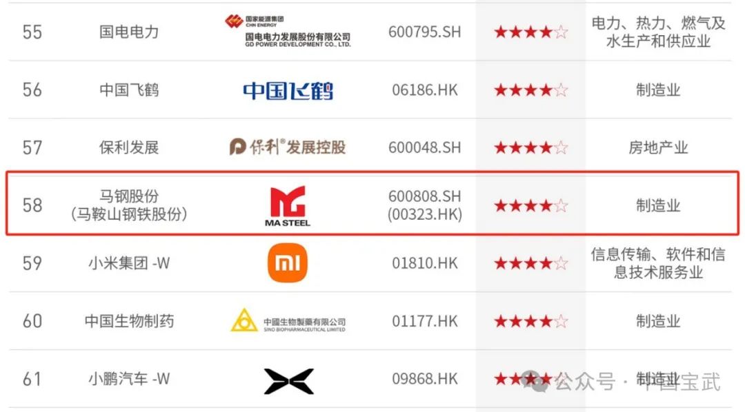 寶鋼股份憑借其在ESG方面優(yōu)異的綜合表現(xiàn),特別是在應(yīng)對氣候變化方面的積極行動,獲得五星級評價,繼續(xù)位列該榜單綜合排名第4位、制造業(yè)第1位。馬鋼股份、中鋼國際均獲得4星半級評價,分別位列該榜單第58位、第80位。