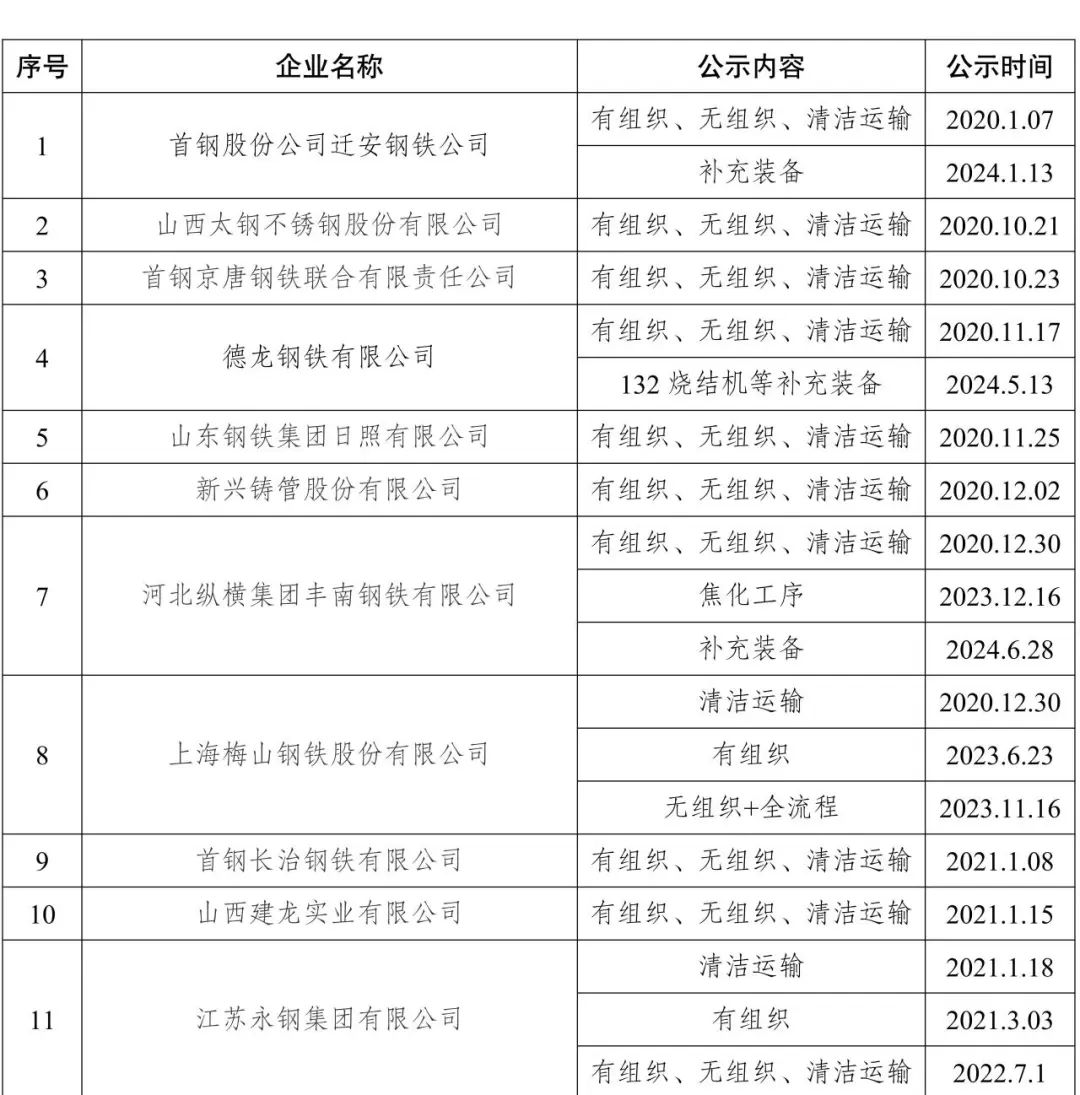 自2020年8月起,中國鋼鐵工業(yè)協(xié)會開展了鋼鐵企業(yè)超低排放改造和評估監(jiān)測進展情況公示工作。截至目前,已有139家企業(yè)在鋼協(xié)網(wǎng)站進行公示。已公示企業(yè)名單匯總及各企業(yè)公示內(nèi)容整理如下: