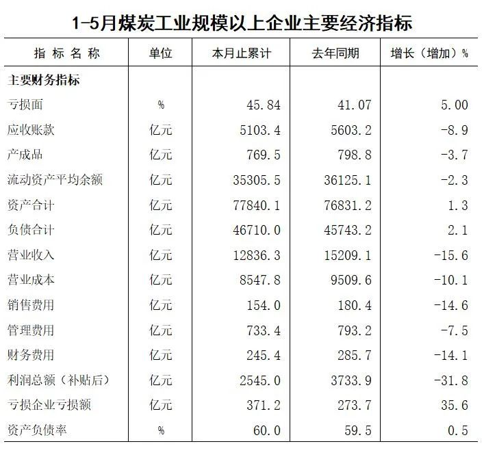2024年1-5月煤炭工業(yè)規(guī)模以上企業(yè)主要經(jīng)濟(jì)指標(biāo)發(fā)布
