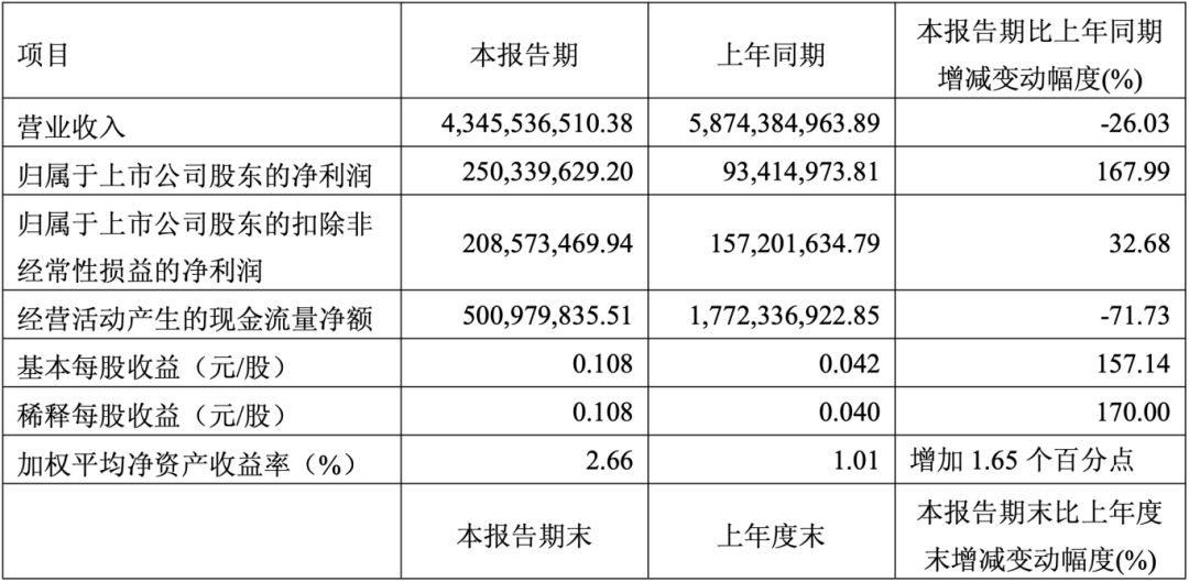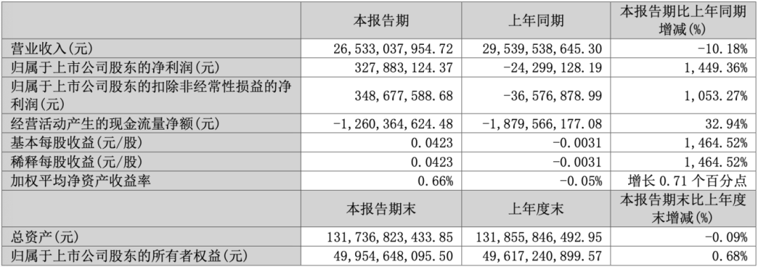 一季度首鋼股份營業(yè)收入為265.33億元,同比下降10.18%;歸母凈利潤自去年同期虧損2430萬元成功扭虧,實現(xiàn)歸母凈利潤3.28億元;扣非歸母凈利潤自去年同期虧損3658萬元成功扭虧,實現(xiàn)扣非歸母凈利潤3.49億元;經(jīng)營現(xiàn)金流凈額為-12.60億元,同比增長32.94%;EPS(全面攤薄)為0.0422元。