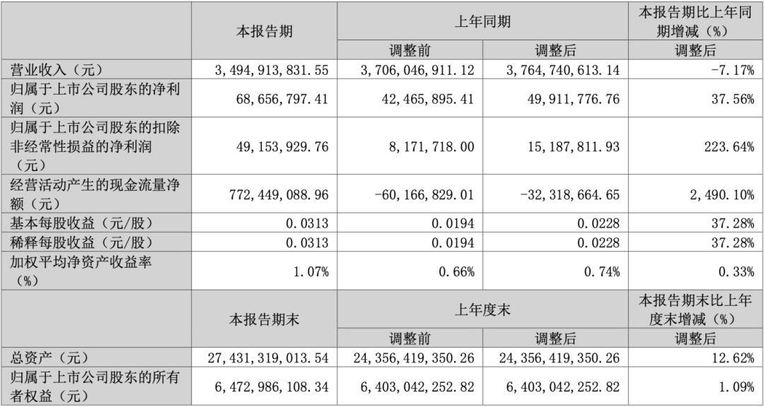 一季度沙鋼股份營業(yè)收入為34.95億元,同比下降7.17%;歸母凈利潤為6866萬元,同比上升37.56%;扣非歸母凈利潤為4915萬元,同比上升223.64%;經(jīng)營現(xiàn)金流凈額為7.72億元,同比增長2490.10%;EPS(全面攤薄)為0.0313元。