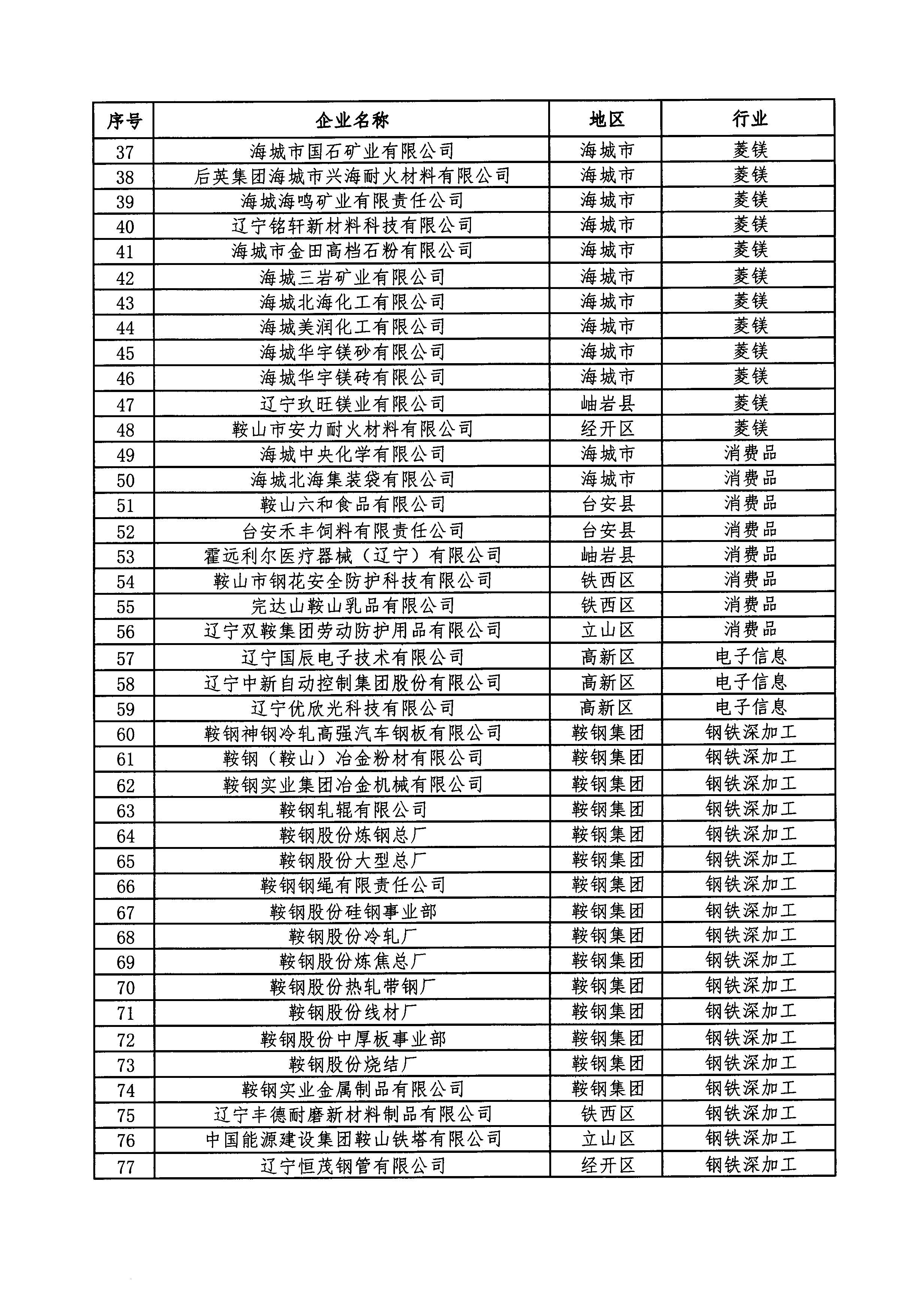 附件:鞍山市第一批市級(jí)綠色制造單位公示名單