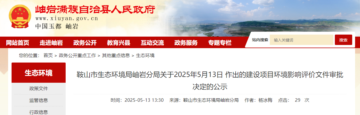根據(jù)建設(shè)項目環(huán)境影響評價審批程序管理的有關(guān)規(guī)定,經(jīng)審查,2025年5月13日我局對建設(shè)項目環(huán)境影響評價文件申請作出審批決定?,F(xiàn)將作出的審批決定情況予以公告,公告期為2025年5月13日-2025年5月21日(7日)。