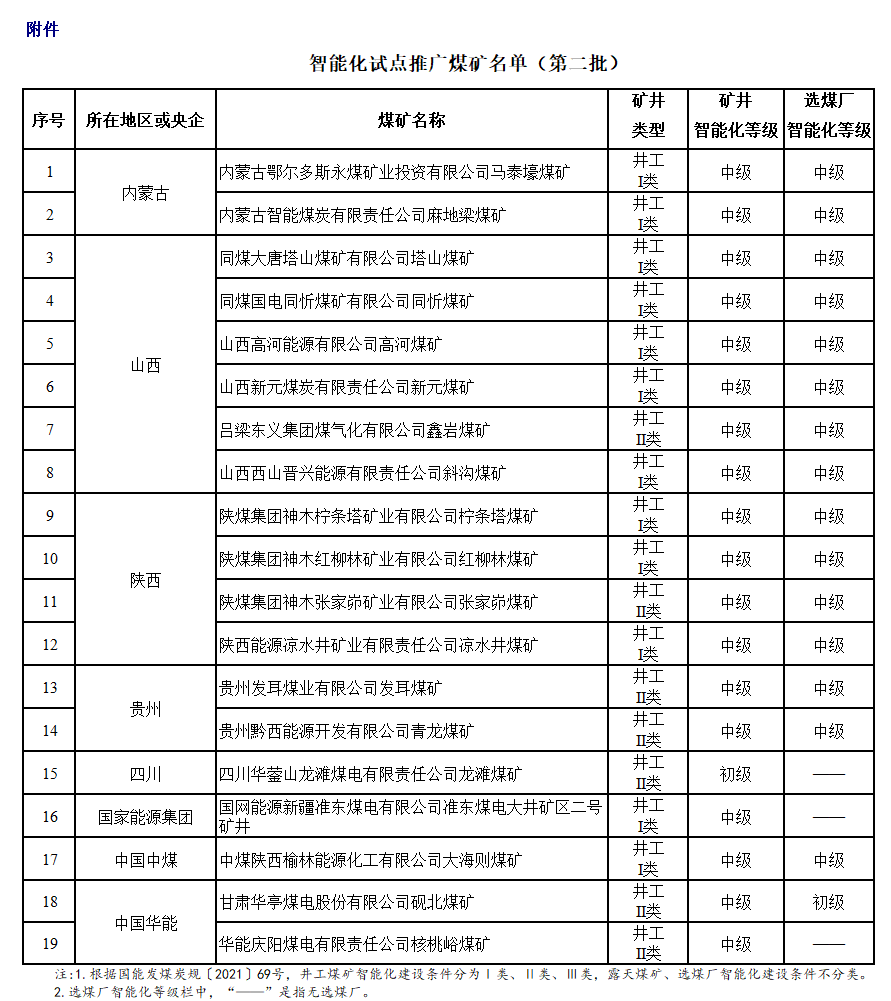 附件:智能化試點(diǎn)推廣煤礦名單(第二批)