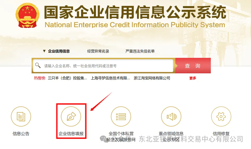 一、進(jìn)入國(guó)家企業(yè)信用信息公示系統(tǒng),網(wǎng)址:https://www.gsxt.gov.cn,進(jìn)入下方“企業(yè)信息填報(bào)”模塊。
