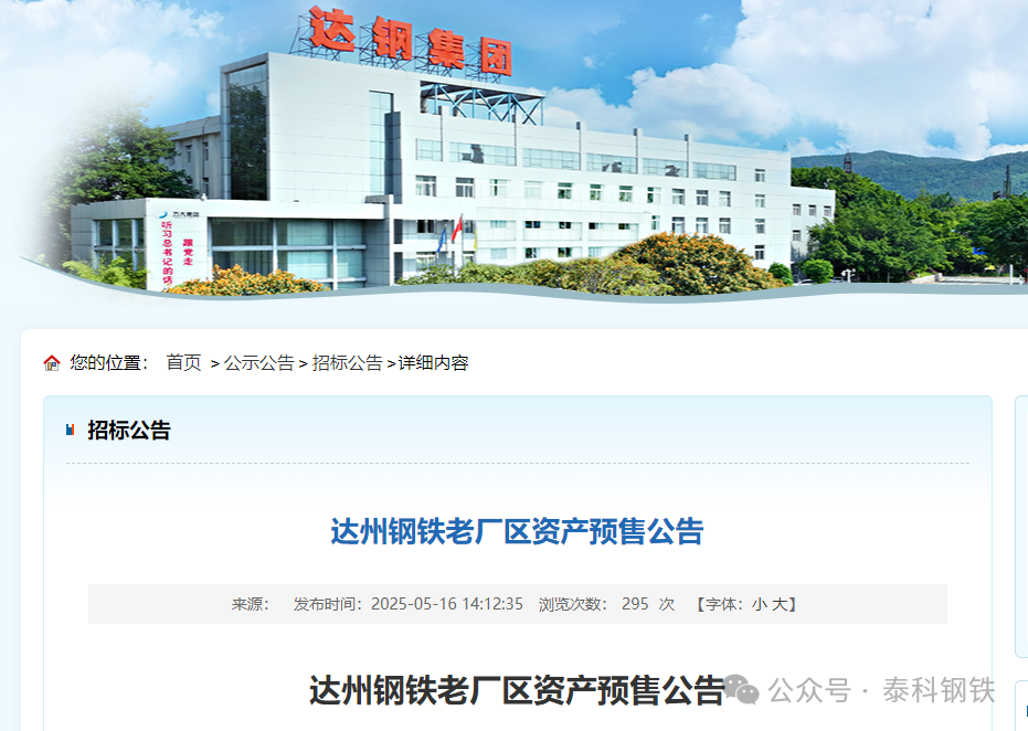 達(dá)州鋼鐵老廠區(qū)資產(chǎn)預(yù)售公告