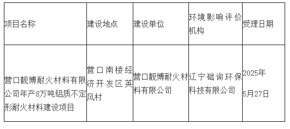 營口靚博耐火材料有限公司年產(chǎn)8萬噸鋁質(zhì)不定形耐火材料建設項目(公示稿)