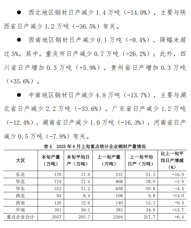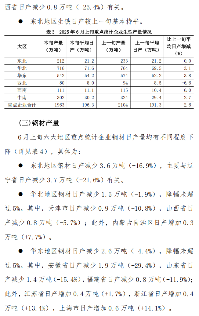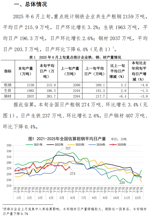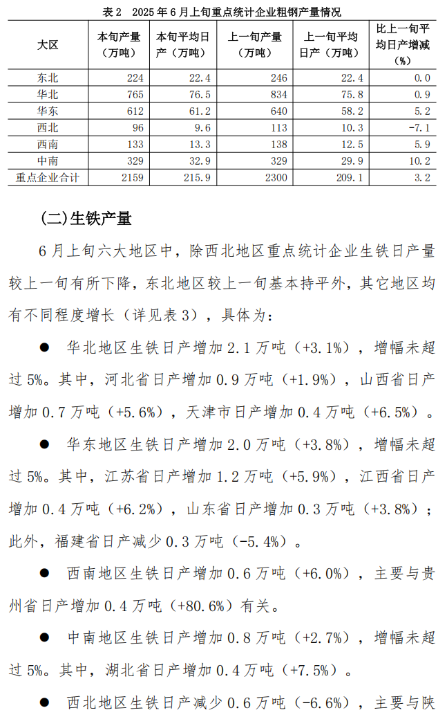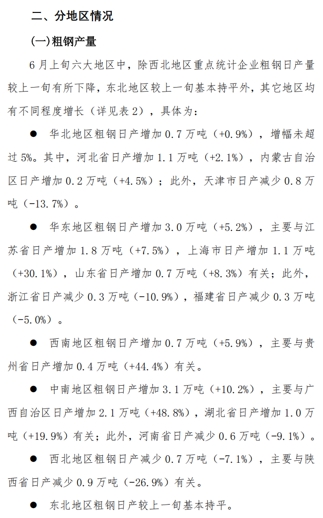 6月上旬重點統(tǒng)計企業(yè)鋼鐵產(chǎn)量旬報