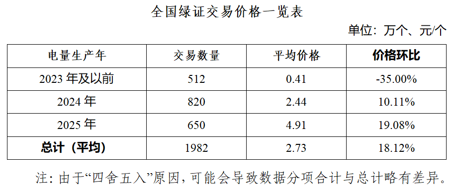 2025年5月,全國綠證單獨(dú)交易1982萬個,交易平均價格為2.73元/個,環(huán)比增長18.12%。