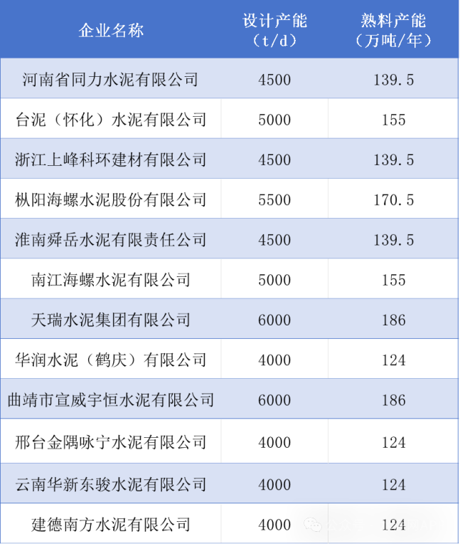 據(jù)統(tǒng)計(jì),今年以來(lái),已有12條水泥熟料生產(chǎn)線(xiàn)建設(shè)項(xiàng)目不再推進(jìn),合計(jì)年產(chǎn)能1767萬(wàn)噸(按照310天計(jì)算),詳情見(jiàn)下表: