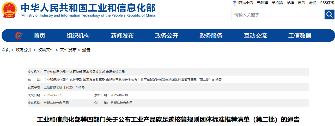 為加快提升工業(yè)產(chǎn)品碳足跡管理水平,建立健全碳足跡管理體系,促進(jìn)工業(yè)綠色低碳轉(zhuǎn)型,經(jīng)相關(guān)標(biāo)準(zhǔn)化機(jī)構(gòu)推薦、專家評(píng)審、網(wǎng)上公示等程序,工業(yè)和信息化部、生態(tài)環(huán)境部、國(guó)家發(fā)展改革委、市場(chǎng)監(jiān)管總局確定了23項(xiàng)工業(yè)產(chǎn)品碳足跡核算規(guī)則團(tuán)體標(biāo)準(zhǔn)推薦清單(第二批),現(xiàn)予以公布。