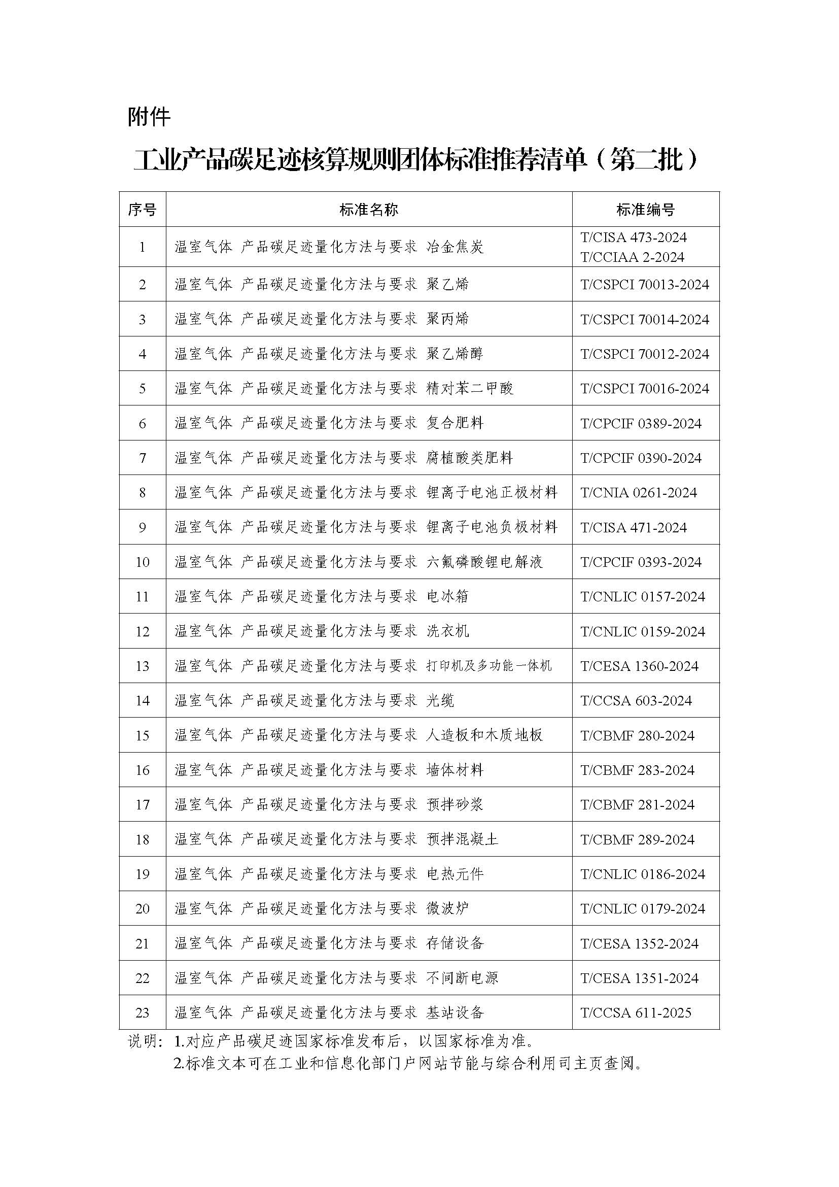 附件:工業(yè)產(chǎn)品碳足跡核算規(guī)則團(tuán)體標(biāo)準(zhǔn)推薦清單(第二批)