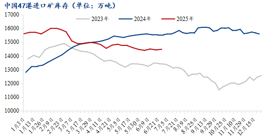 產(chǎn)業(yè)端,基本面成材需求仍有韌性、鐵水產(chǎn)量維持高位,鐵礦整體去庫;自身基本面來看,6月鐵礦進(jìn)入季節(jié)性發(fā)運(yùn)沖量階段,全球海漂庫存持續(xù)累庫,推動到港進(jìn)入持續(xù)增加趨勢,同時(shí)國內(nèi)高爐小范圍年中檢修,鐵水產(chǎn)量繼續(xù)三周小幅減產(chǎn),鐵礦庫存窄幅波動。