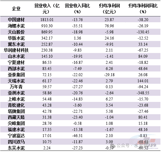 表1:2024年水泥上市公司盈利情況
