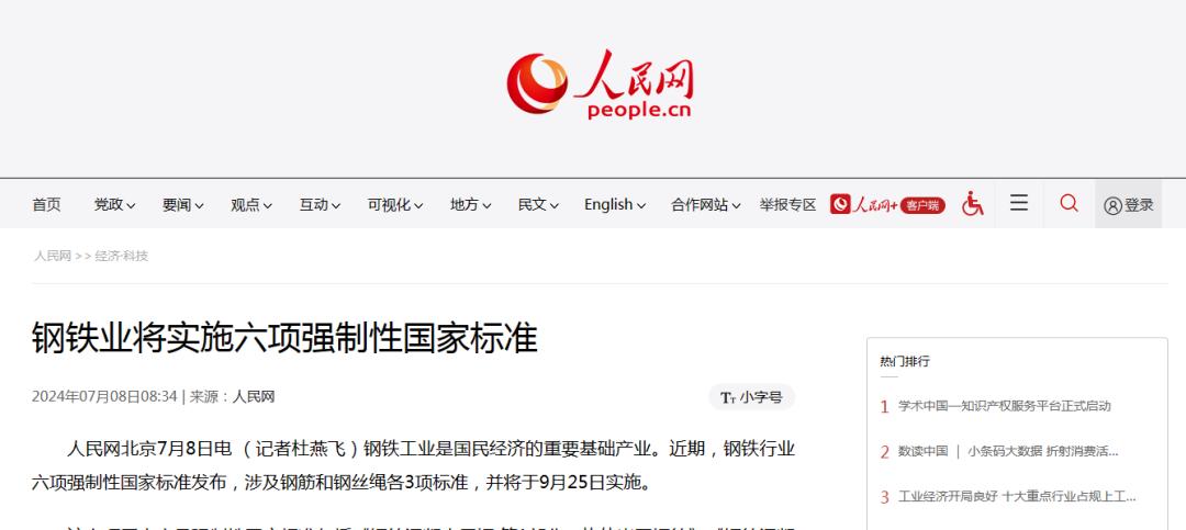鋼鐵工業(yè)是國(guó)民經(jīng)濟(jì)的重要基礎(chǔ)產(chǎn)業(yè)。近期,鋼鐵行業(yè)六項(xiàng)強(qiáng)制性國(guó)家標(biāo)準(zhǔn)發(fā)布,涉及鋼筋和鋼絲繩各3項(xiàng)標(biāo)準(zhǔn),并將于9月25日實(shí)施。