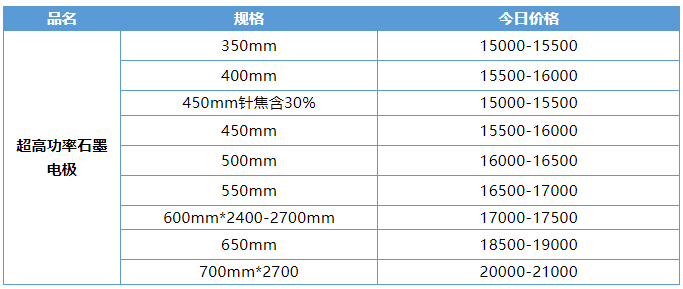 7月14日超高功率石墨電極價格行情(主流廠家/元/噸)
