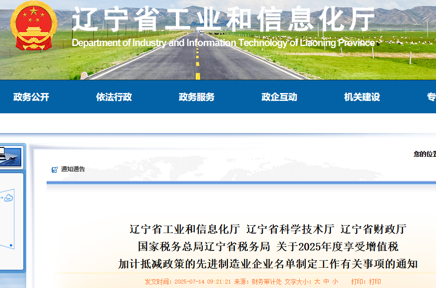 根據(jù)《財(cái)政部 稅務(wù)總局關(guān)于先進(jìn)制造業(yè)企業(yè)增值稅加計(jì)抵減政策的公告》(財(cái)政部 稅務(wù)總局公告2023年第43號(hào))、《工業(yè)和信息化部辦公廳 財(cái)政部辦公廳 國(guó)家稅務(wù)總局辦公廳關(guān)于2025年度享受增值稅加計(jì)抵減政策的先進(jìn)制造業(yè)企業(yè)名單制定工作有關(guān)事項(xiàng)的通知》(工信廳聯(lián)財(cái)函〔2025〕217號(hào))有關(guān)規(guī)定,為做好2025年度享受增值稅加計(jì)抵減政策的先進(jìn)制造業(yè)企業(yè)名單制定工作,現(xiàn)將有關(guān)事項(xiàng)通知如下: