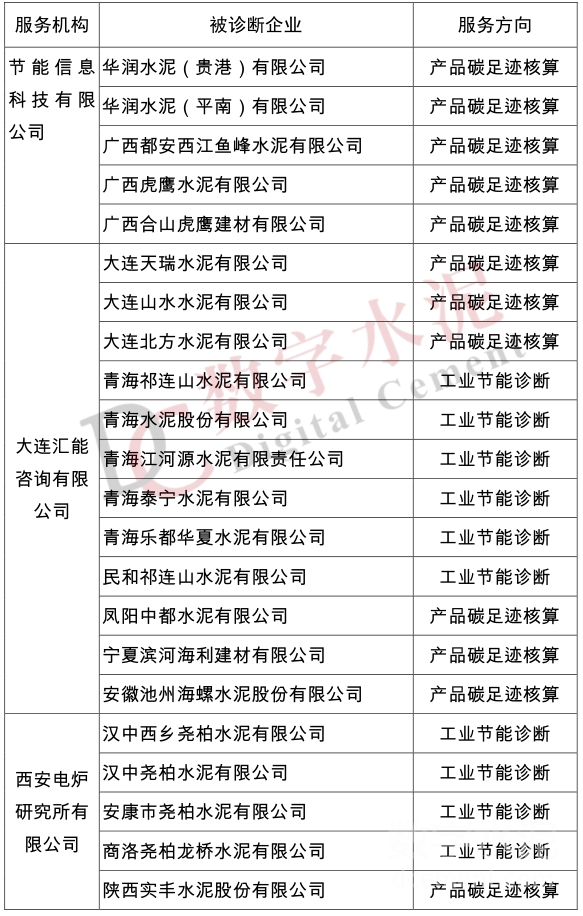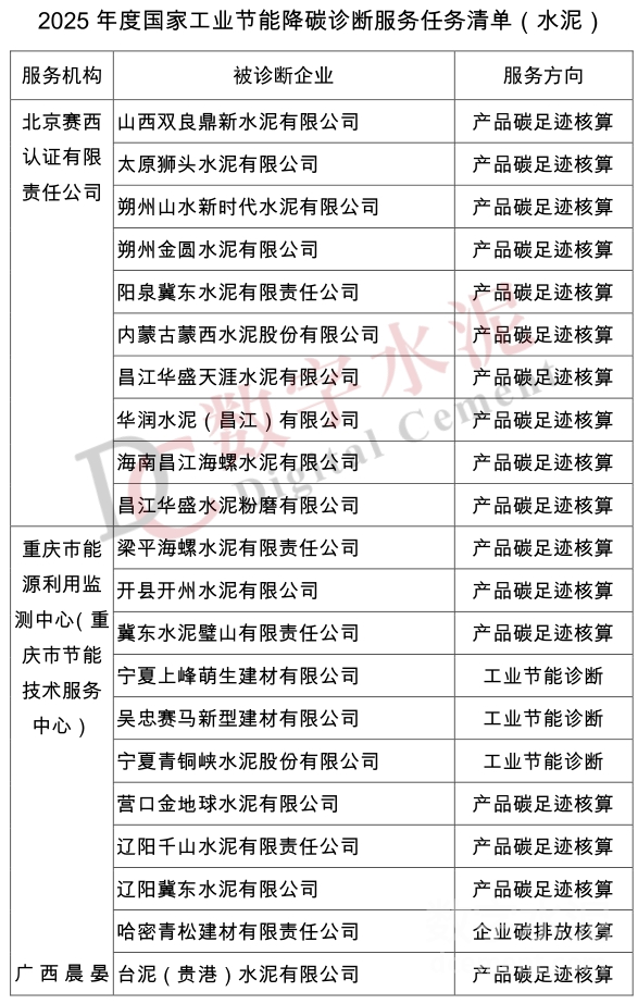 其中,水泥行業(yè)2025年度國家工業(yè)節(jié)能降碳診斷服務任務清單整理如下: